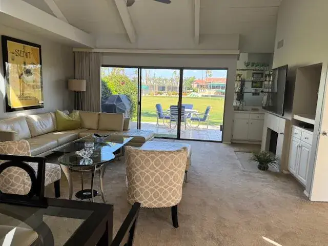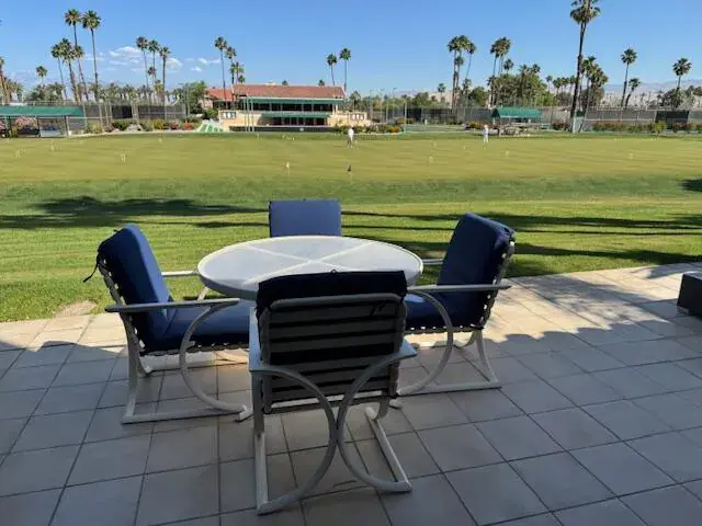 Fabulous location for all tennis, pickleball, bocce ball, and croquet players. This Mission Hills tennis villa is situated across from the tennis & fitness center. It has a light and airy feel along with a spacious primary suite with a TOTO bidet toilet. Glass sliders lead you to front row seats on the croquet lawns. 3 Smart TV’s. Spectacular mountain view from back patio with BBQ. Spacious front tiled courtyard with seating. Conveniently located washer and dryer. Turnkey Furnished. Next available May $2800, June, July & August $2400, Sept $2800, October $2900, Nov $3000, Dec $3500. NOT AVAILABLE JAN-MAR 2027.