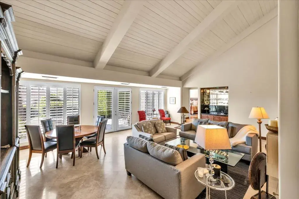 Discover this private and inviting condo, perfectly designed for comfort and convenience. A rare attached two-car garage with built-in storage sets this property apart. Inside, travertine floors flow seamlessly throughout, complementing the spacious great room with a wet bar–ideal for entertaining. The kitchen features a cozy sitting area, while a dedicated office space provides functionality for today’s lifestyle. Enjoy the best of outdoor living with both a front courtyard and a back patio, perfect for relaxing and taking in the upcoming cooler weather. The home is ideally located near the community pool, spa, and expansive green space. This phase of the community is scheduled for fresh exterior painting soon. HOA benefits include a Spectrum package with Wi-Fi and Cable TV, ensuring convenience and value. Club and Fitness Memberships are not included but available through Mission Hills Country Club.