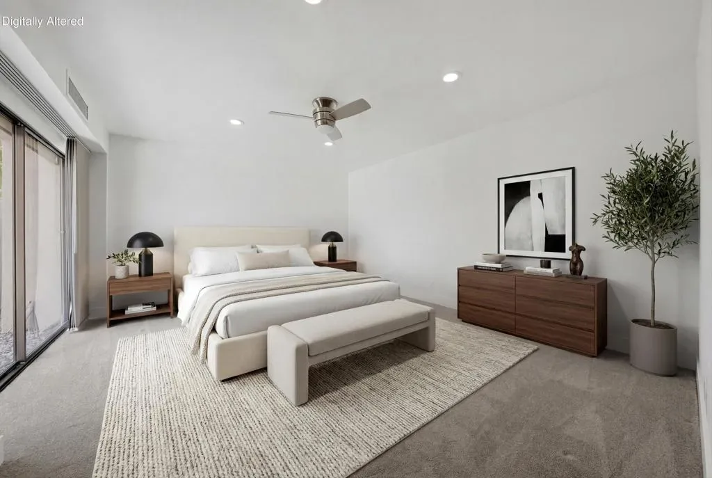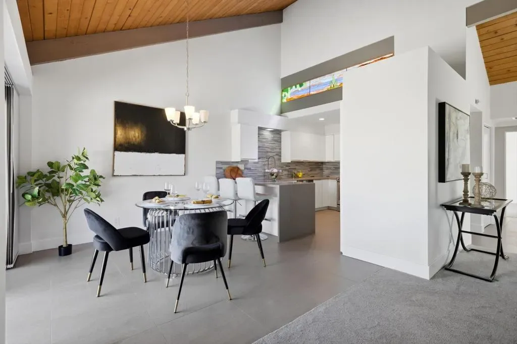 Stunning 3 bedroom 3 bath property that has been completely reimagined with modern clean lines and NO stepdown. Gated large private courtyard, with spacious rear entertaining space overlooking a beautiful greenbelt. Vaulted wood beamed ceilings, new tile flooring, quartz countertops and stainless steel appliances and super close to the Clubhouse.Best of all, the land lease has been paid at the earliest cycle and will expire in 2121!This is one you don’t want to miss!