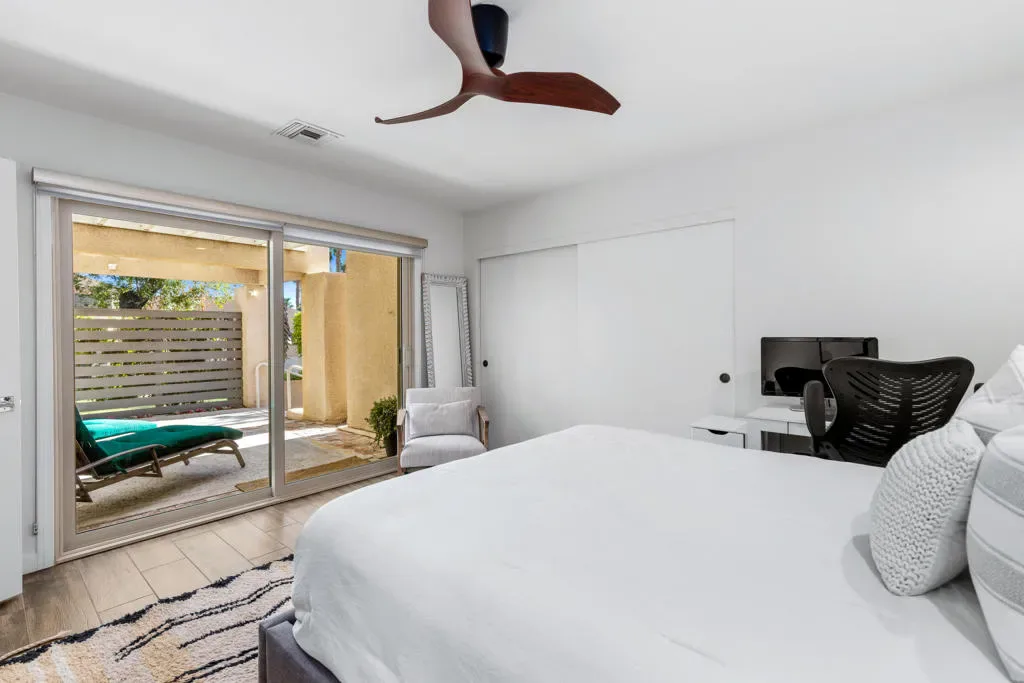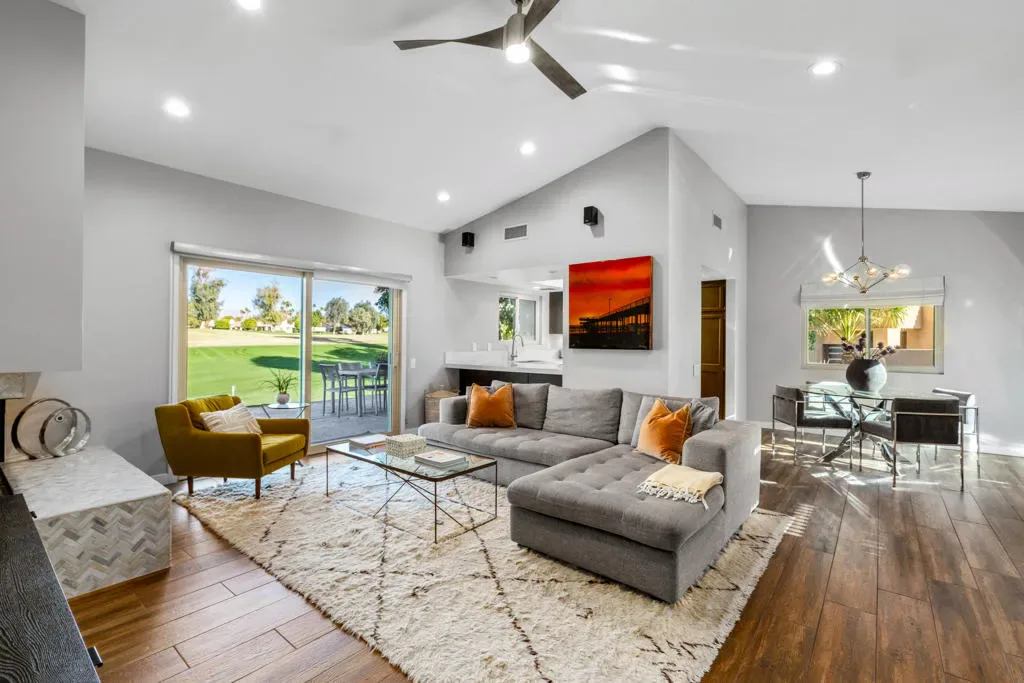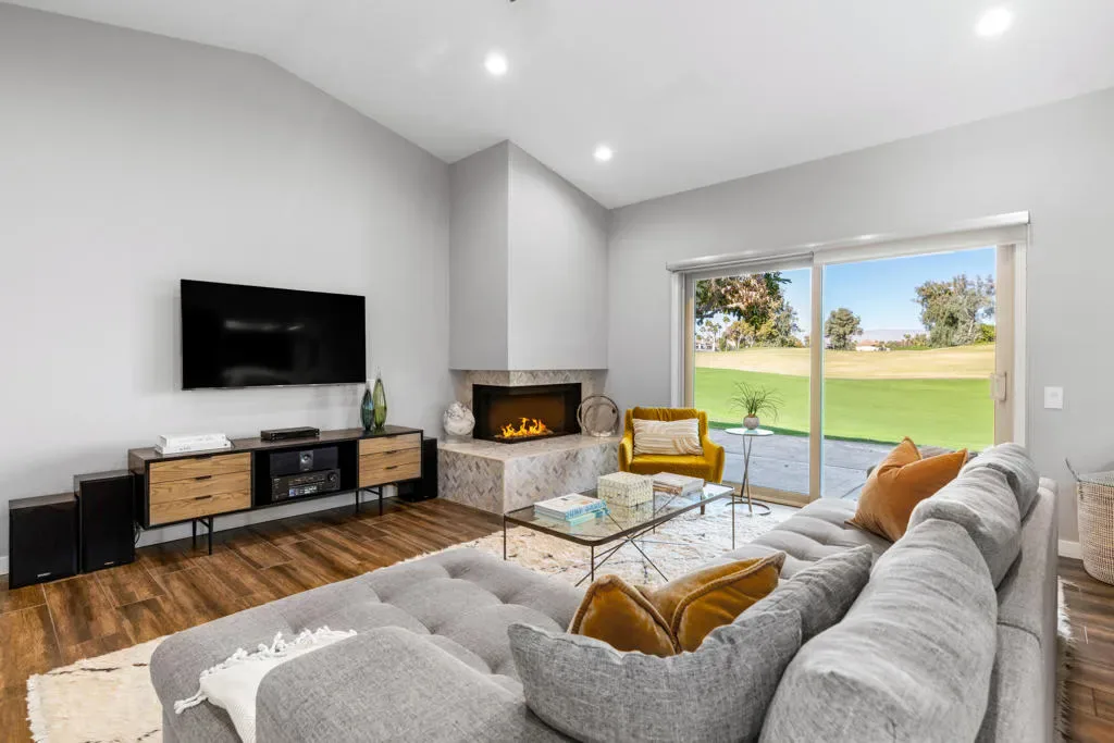 CURRENTLY RENTED – AVAILABLE – September 1, 2026. Beautifully remodeled 3bd & 2bath condo located in Mission Hills Country Club. This 1382sf, end unit with quadruple fairway views offers two primary ensuite bedrooms with large modern baths. The well sized third bedroom can be used as an office as well. The kitchen has Cambria quartz counter tops, stainless steal appliances, and plenty of cabinet space. The main living space is always filled with natural light , has vaulted ceilings, and a redesigned corner fireplace that is perfect to cozy up next to during the chilly winter nights. The front courtyard and back patio areas are the perfect spaces to enjoy your favorite beverage or relax and take in the midday sun. Please contact the listing agent for availability and rates. Available for seasonal or long term lease. Available Furnished or Unfurnished. Start enjoying your desert lifestyle today!