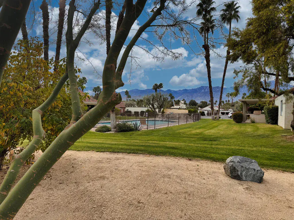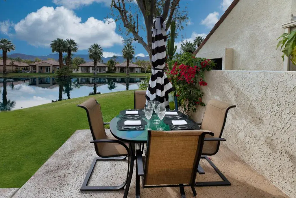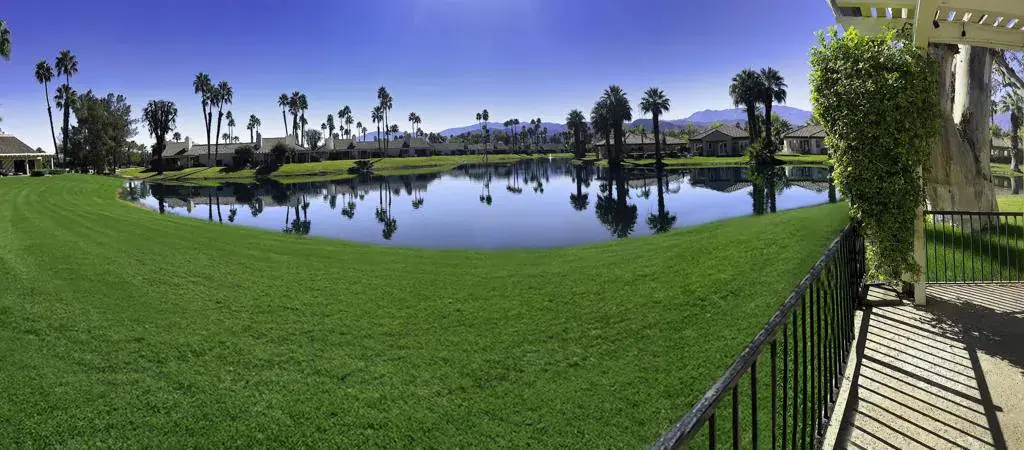 This is a winner! SOUTH-FACING FULL LAKE FRONTAGE CONTEMPORARY & JUST REMODELED! Stunning lake and panoramic Mountain views all around that take your breathe away! Walls of glass pour the views into every room! Perfect location inside prestigious Mission Hills Country Club This home features soaring vaulted wood ceilings, walls of glass, and seamless indoor/outdoor living. Enjoy three outdoor patios, including an expansive covered deck and waterfront, plus a wide adjacent greenbelt–offering exceptional privacy and dramatically expanded outdoor living you don’t have to maintain. Move-in ready with chic finishes, incredible natural light, and the most desirable orientation in the desert. HOA’a include a lot, guard gated security at 3 entrances, Internet, Cable TV, roof maintenance, exterior painting of structure and patio walls, landscaping, common area maintenance, lake maintenance, trash, community pools and spas! A rare offering for full-time living or an unforgettable seasonal retreat or seasonal rental income opportunity.