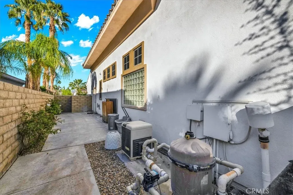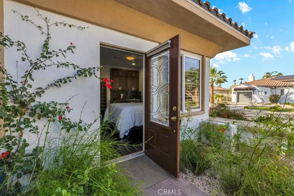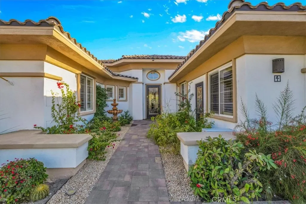 Set against a backdrop of sweeping mountain views, this 4 bedroom, 4.5 bath residence in Oakmont Estates offers 3,361 square feet of thoughtfully enhanced living space on an 11,761 square foot parcel. The private pool and spa create a resort-style setting framed by mature landscaping, privacy wall and open desert sky. Extensively upgraded, the home features new flooring throughout, reconfigured interior walls for improved flow, fresh interior paint, upgraded lighting in the living room, dining area, piano space, and casita. The open floor plan connects the formal dining room to the casual living area with fireplace and wet bar, creating an ideal layout for entertaining. Dramatic ceilings, refined architectural details, and expansive windows enhance the sense of scale and light. The gourmet kitchen is equipped with granite and quartz surfaces, custom cabinetry, stainless steel appliances, a new Thermador 6-burner gas range with vent hood, SubZero refrigerator, oversized wine cooler, new LG washer, new disposal, and generous prep space centered around a large island. The primary suite offers substantial proportions and includes a private retreat suitable for an office, fitness area, or sitting room. The spa-like bath features dual sinks, a jetted soaking tub, separate shower, and a newly installed bidet toilet. An attached casita with kitchenette connects through the formal entry courtyard, offering flexibility for guests or extended family. Outdoor improvements include new front patio pavers and plantings, new pool decking, additional rear landscaping, safety rails at the shower and pool, acid-washed, re-grouted pool and new lighting, updated jacuzzi motor, and a pool heater. The backyard remains private and ideal for enjoying mountain views from the pool, spa or large covered patio. Additional system upgrades include a leased solar system with three backup batteries, a new HVAC unit, dual A/C and heating systems, tank less gas water heater, whole-house water purification system, electric blackout shades in the bedroom, and gas appliances. Located within the secure gates of Mission Hills Country Club, residents enjoy access to golf, tennis, and clubhouse amenities, all minutes from Rancho Mirage dining, shopping, and entertainment. The HOA offers 2 restaurants, entertainment with live music and dances, trivia nights, and much more. HOA has optional packages to join, including a golf membership.