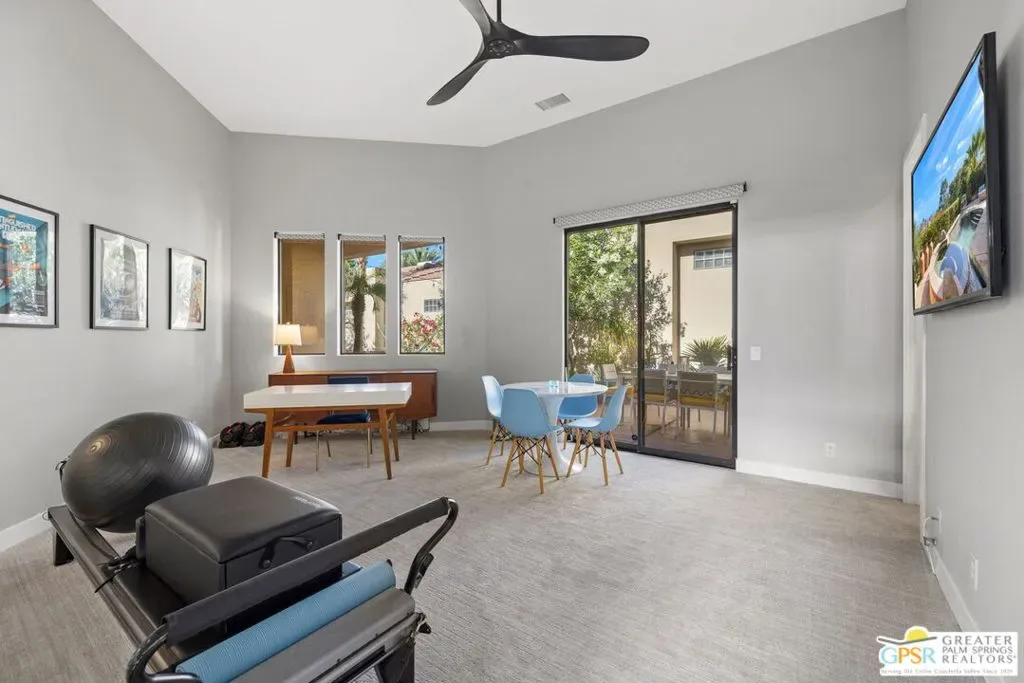 Set along the 14th fairway of the Pete Dye Course at Mission Hills Country Club, this single-level 3 bedroom, 3.5 bath residence at Stone Ridge Estates captures sweeping golf course and mountain views in a setting defined by space, light, and lifestyle. With a private pool and spa, open floor plan, and both formal and casual living areas, the home is designed for effortless desert living. Tall ceilings and expansive living spaces create an immediate sense of volume, while large windows and doors frame the fairway and surrounding mountains. The layout allows for both connection and separation, making it ideal for entertaining or simply enjoying the quiet rhythm of the desert. Outdoor living is a true highlight. Mornings begin with sunlight stretching across the fairway, while evenings unfold poolside beneath retractable awnings designed for comfort and shade. A private side courtyard offers a second outdoor retreatlushly landscaped and perfect for quiet moments, gatherings, or simply enjoying the desert air. The Primary Suite enjoys views and privacy, while two additional ensuite bedrooms provide comfortable accommodations for guests or extended stays. The home has also been thoughtfully updated, including newer Lennox HVAC systems, motorized shades, updated lighting, pool equipment, and refreshed landscaping. Additional features include a spacious garage, smart home lighting, and flexible living spaces that have supported both personal enjoyment and seasonal rental use. Ownership includes HOA benefits with social/fitness membership to Mission Hills Country Club, offering access to dining, fitness, and a vibrant calendar of events all within a welcoming and well-managed community. A home defined not just by its views, but by the lifestyle it creates – where mornings, sunsets, and everyday moments become something special.