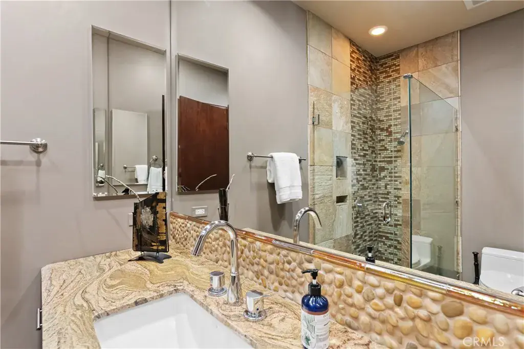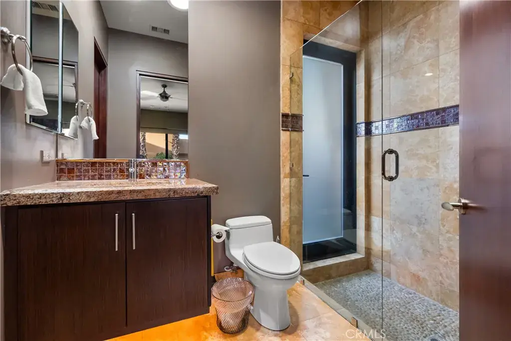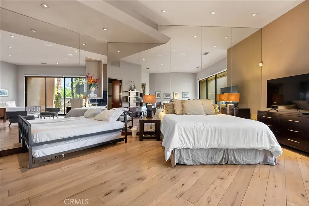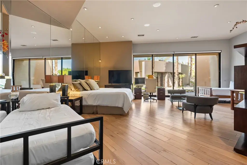 Modern Mansion Oasis can easily accommodate up to 24 guests. The main house includes 6 bedrooms (5 with en suite baths); the guest house features another 3 bedrooms and 2 ensuite baths (one jack-and-jill for the third bedroom), for a total of 9 comfortable sleeping areas.