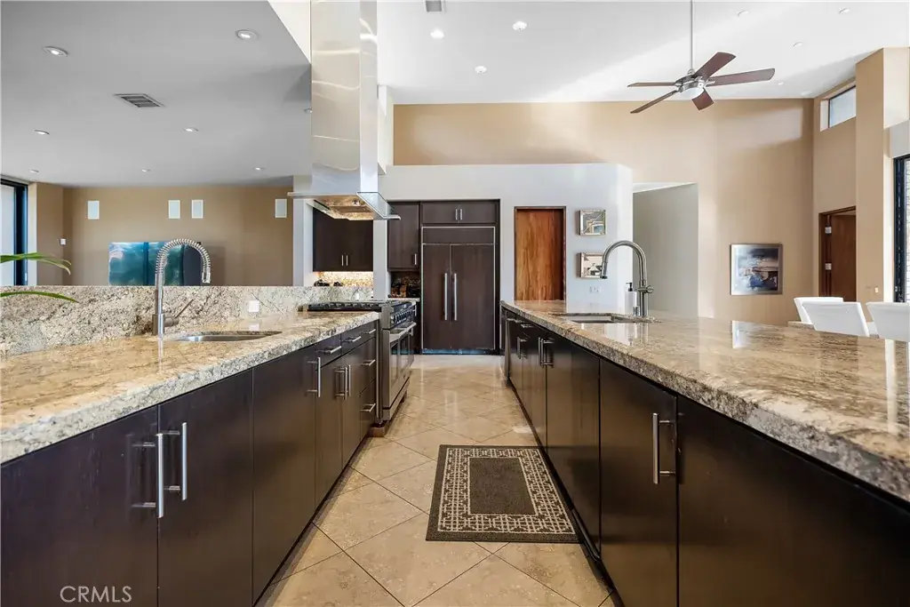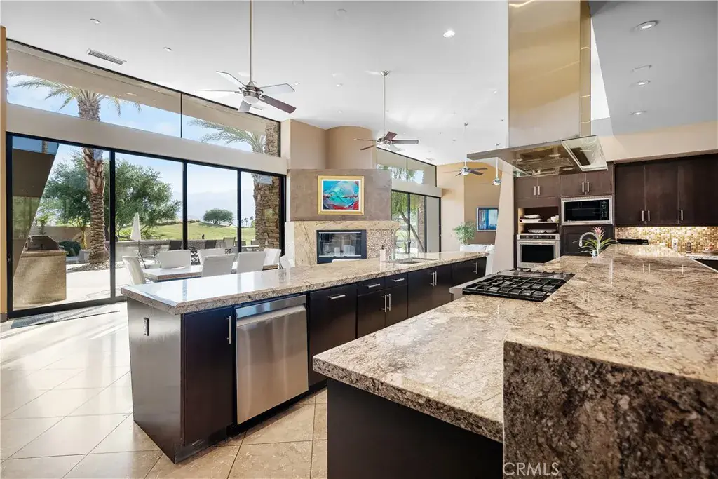 Extraordinary attention to details abounds throughout the residence. The main living space features a relaxing home theater and connects to an open kitchen with state-of-the-art appliances. Sunken wet bars, a catering kitchen/butlers pantry, and an outdoor grill and bar make entertaining a breeze. The estate’s various outdoor fireplaces, exquisitely landscaped plots, and covered lounging areas lend themselves well to relaxing and tasteful events.