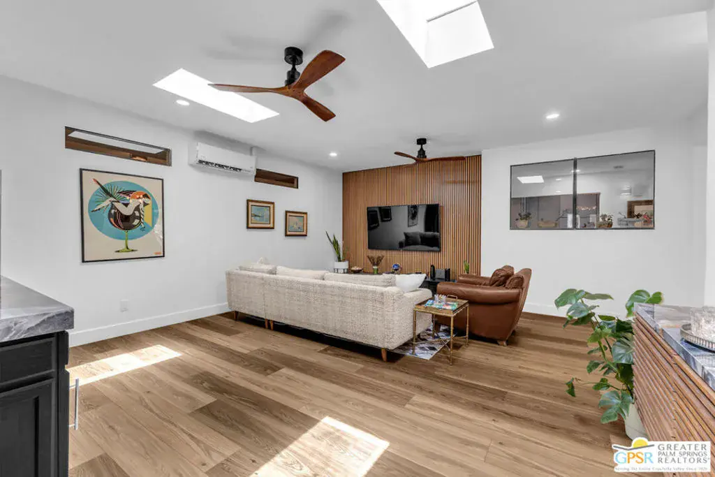 This isn’t just a house; it’s a space that inspires. Natural light pours in through skylights, highlighting vaulted ceilings and gallery-worthy walls that are perfect for art lovers. The open layout offers easy flow for entertaining and peaceful separation when you want privacy. Three spacious living areas create flexible options for gatherings, quiet nights at home, or showcasing your favorite pieces. The primary suite has its own private wing with a sitting area (currently an office), a secluded patio, and a spa-like bath. Two additional en-suite bedrooms, including one oversized, give guests plenty of comfort. A custom bar with wine and beverage fridges connects to a TV wall designed for movie nights or game-day energy. The modern kitchen features a walk-in pantry, abundant storage, and newer appliances, all while keeping the chef part of the action. Two custom fireplaces add warmth and visual impact. Outside, a grassy yard welcomes kids and pets, and a 10-person swim spa offers year-round relaxation. The community amenities include a pool, spa, tennis, and pickleball courts. Located beside the world-famous Sunnylands estate and across from Mission Hills, you are minutes from luxury shopping, everyday conveniences, and the upcoming Disney Cotino community. With front yard care included in the HOA dues and 60 leased solar panels for energy efficiency, this home is easy to lock and leave or enjoy full-time. Come see why 12 Santa Clara Drive isn’t just a home; it is a beautifully lit, thoughtfully designed stage for your next chapter of elevated desert living.