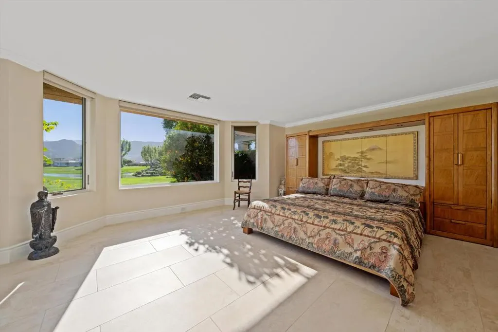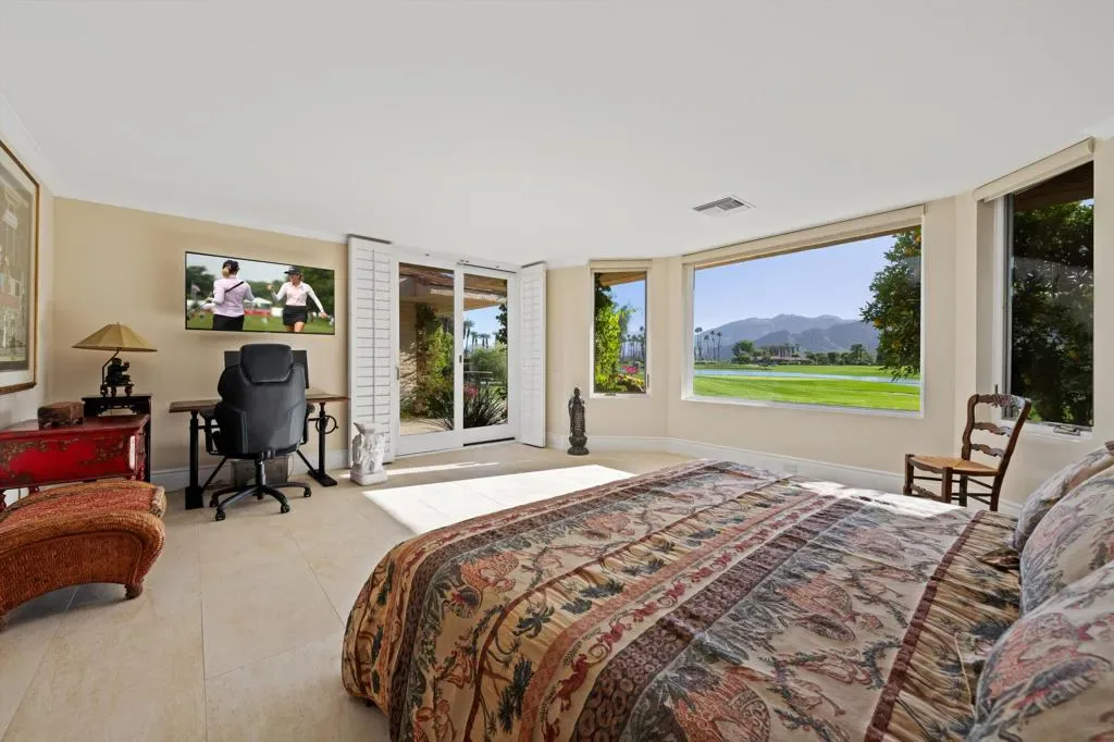 ***3 MONTH MINIMUM***Sensational, unobstructed, south Facing, Double Fairway, lake and mountain views! On the golf course! Totally remodeled & updated! Pristine clean, light and open zen vibe with new flooring & automated shades throughout! Gorgeous remodeled gourmet open kitchen. Beautiful cathedral ceiling in the living room. The spacious master suite offers amazing views with dual bathrooms with a large walk in closet. Excellent separation of the three bedrooms suites. One bedroom is currently used as an office. Gorgeous side yard, and lots of space for entertaining. Association heated pool and spa conveniently close by! Minutes to Palm Springs, the airport and El Paseo for shopping, dining and entertainment!