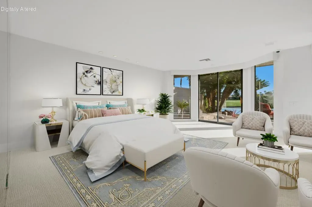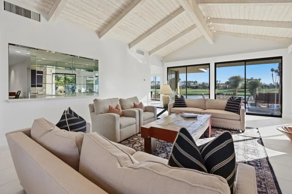 Forever Views! Welcome to 65 Mayfair Drive in the prestigious Morningside Country Club, Rancho Mirage. This stunning lakefront home sits on one of the community’s most coveted lots. The remodeled, Wi-Fi-enabled infinity-edge pool appears to spill right into the lake, while the spacious rear patio offers breathtaking views of double fairways and the mountain range–perfect for al fresco dining and outdoor entertaining. Step into the private courtyard and feel the serenity of a lush garden with a bubbling fountain. Inside, the entertainer’s dream layout boasts a soaring beamed ceiling great room, custom fireplace, wet bar, and a dining room that comfortably seats ten. Expansive glass doors blur the line between indoors and out, revealing a resort-like setting ideal for year-round desert living. The chef’s kitchen includes an island with a secondary sink and premium stainless appliances, plus a bright, sunny ”Morning Room” to start your day. The spacious primary suite offers built-in cabinetry and a separate sitting area/office, along with dual primary bathrooms–each with its own shower, closet, and water closet–for a spa-like experience. Two additional bedroom suites, each with a private bath, provide comfort and privacy for guests. Additional features include new skylights with architectural openings, whole-house water filtration, EV charging station, insulated garage doors, electric shades, security cameras, built-in safe, and partial furnishings–perfect for those who love to entertain. Membership Information: www.clubatmorningside.com/membership