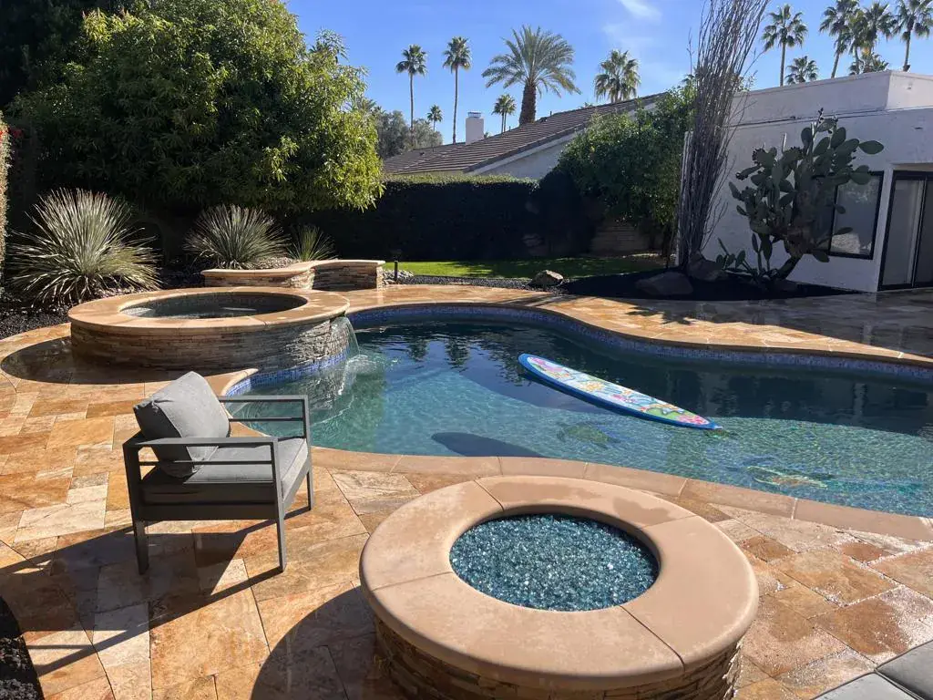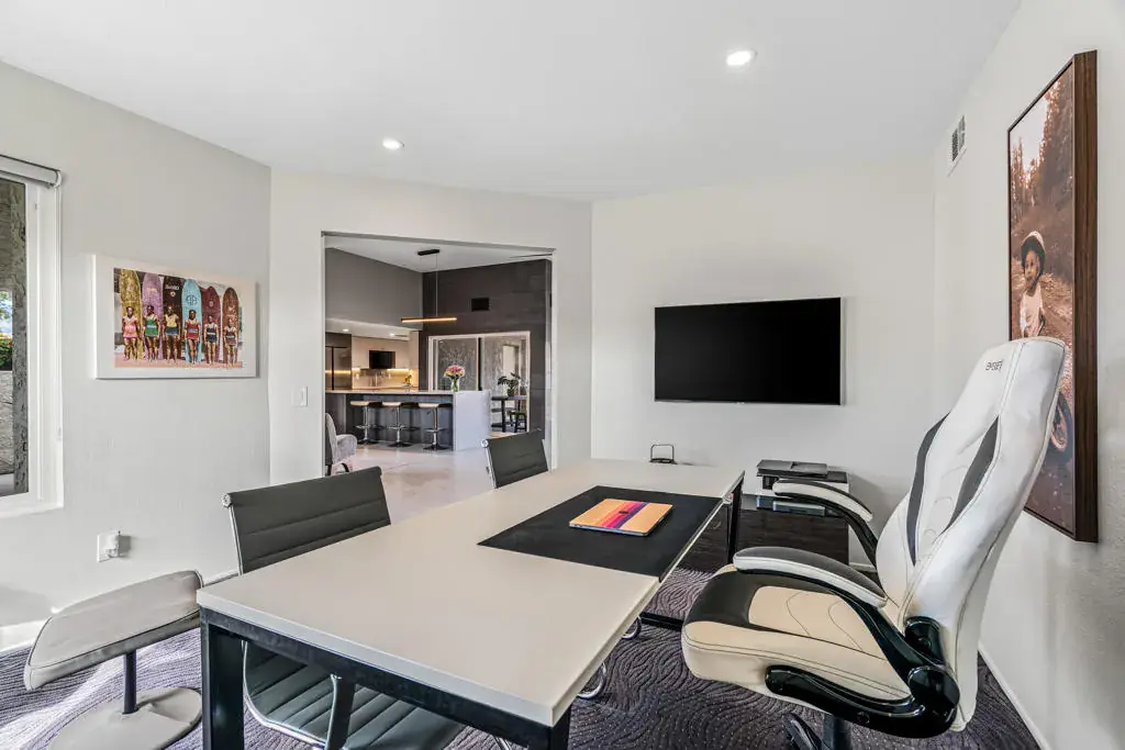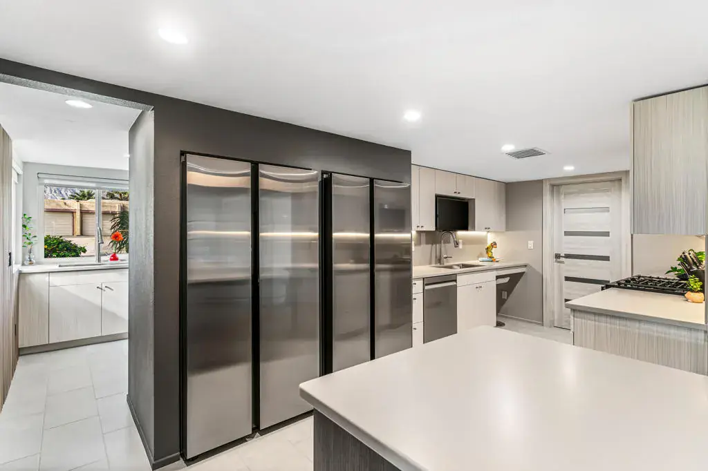 ELEGANT, SIMPLY ELEGANT! Modern Luxury in the Heart of Tamarisk – Rancho Mirage -Located in the highly sought-after Tamarisk area of Rancho Mirage, fabulously positioned between Tamarisk Country Club and Mission Hills Country Club, this extensively remodeled contemporary residence offers refined desert living in one of the most Exclusive Non-Gated communities in the Coachella Valley.Set on a desirable corner lot, this 3-bedroom home, with a bonus room, great for office or den, has been thoughtfully redesigned from top to bottom with a focus on modern architecture, quality craftsmanship, and seamless indoor-outdoor living.The open-concept floor plan is anchored by a stunning contemporary dual kitchen workspace featuring custom cabinetry, oversized island, designer Corian countertops, dual sinks, dual refrigerators, dual dishwashers, premium designer appliances, and a Butler’s Pantry, ideal for both everyday living and for entertaining. Note also specialty Italian-designed interior doors, and the dramatic oversized Pivot Entry Door. Large-format designer tile flooring, upgraded baseboards, and custom lighting elevate every space.All 3 bathrooms (2 ensuite) have been fully remodeled with spa-inspired finishes, State-of-the-Art fixtures, and interior glass spa doors. Smart-home upgrades include Nest Climate Control and safety systems, dual air conditioners, and modern digital security and gate systems.The backyard has been transformed with approximately $150,000 in hardscaping and landscaping, creating a private resort-style setting. Enjoy a fully updated pool and spa with specialty lighting, outdoor dining area, outdoor living area, exquisite gas fire pit with seating areas, built-in BBQ and outdoor kitchen. Mature landscaping, automated sprinkler and drip irrigation, mango and citrus trees, and outdoor security lighting complete the experience.You will also find a detached ‘sidekick’ room by the pool – great for an art studio or extra office with custom cabinetry and mini-fridge. Additional highlights include covered front courtyard with seating, expansive driveway, and a rare triple-car garage with modern glass doors. The exterior has been modernized with updated paint and stonework, reinforcing the home’s clean, contemporary aesthetic.Quiet, private, and impeccably upgraded, this home offers a rare opportunity to own a truly turnkey modern residence in one of Rancho Mirage’s most desirable locations. This is a MUST SEE!!