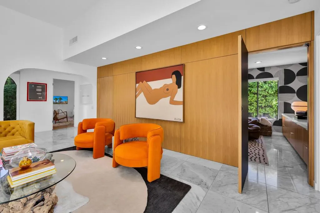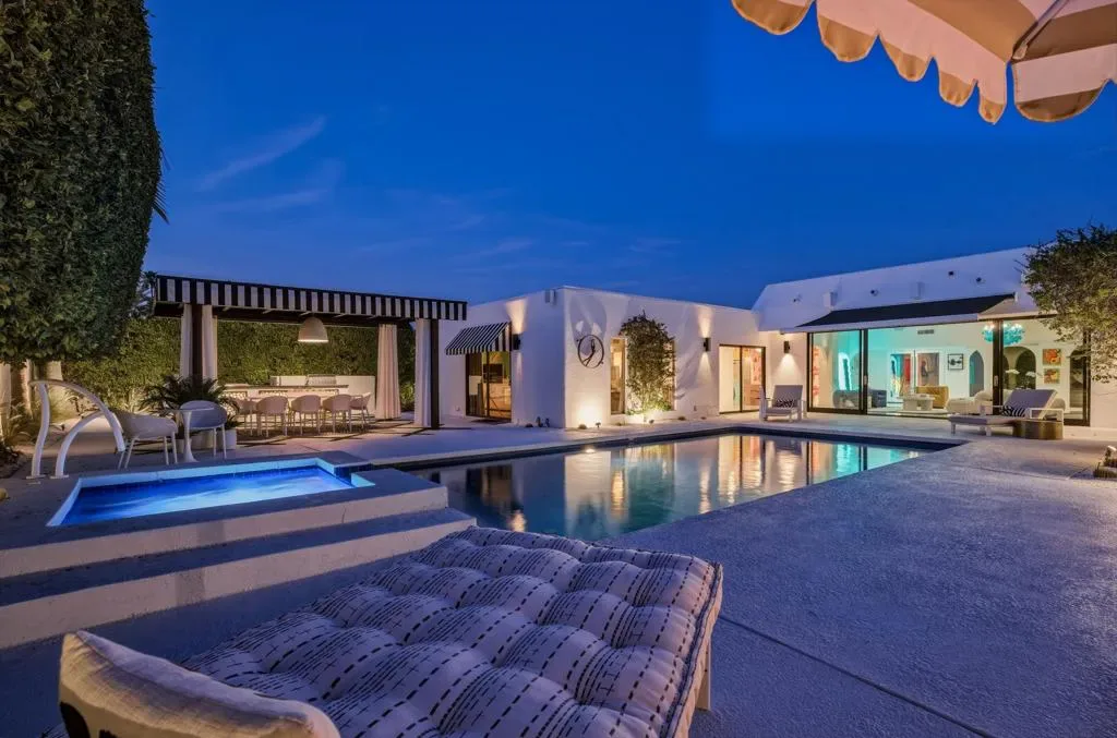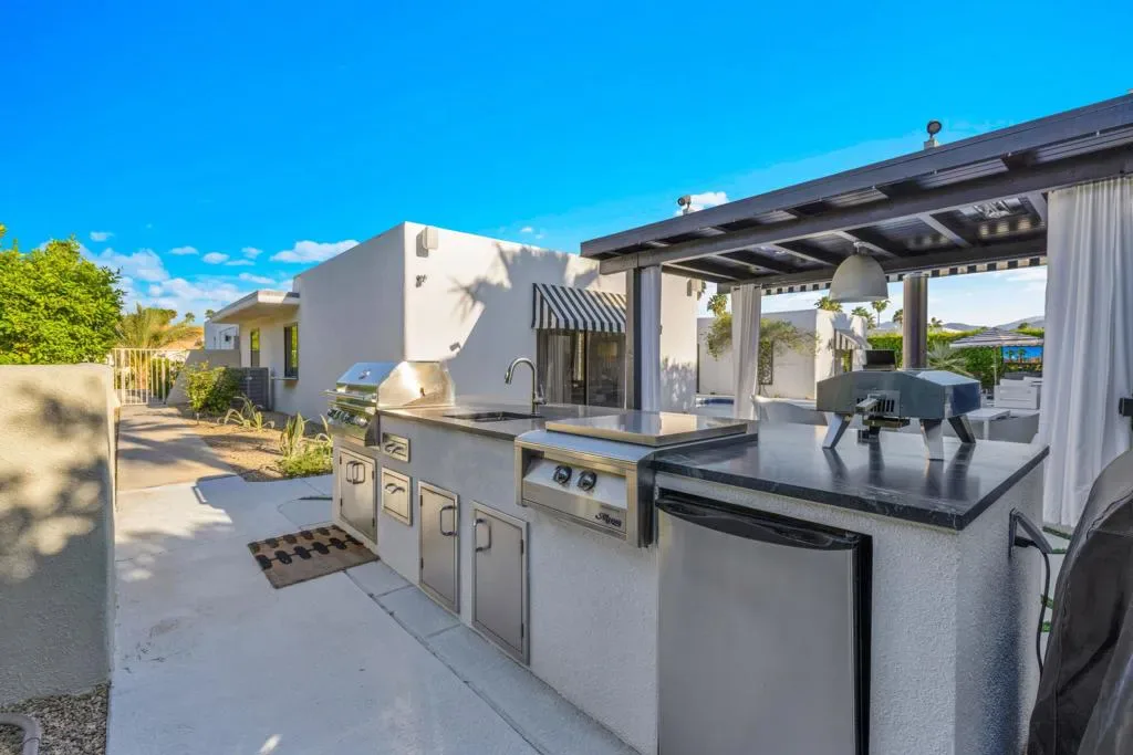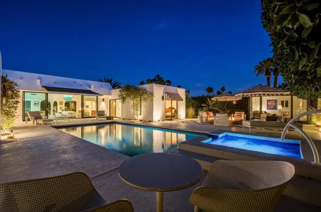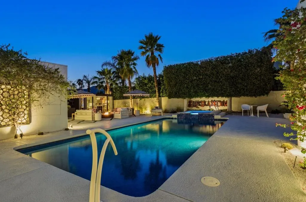 Ideally situated in prestigious Rancho Mirage near Tamarisk Country Club, this 3BD/3.5BA residence embodies a sophisticated expression of desert luxury, with close proximity to one of the region’s most coveted private golf and social clubs.Originally built in 1977 and thoughtfully reimagined, the home draws on mid-century modern principles–soaring ceilings, clean architectural lines, and a seamless interplay of light and space. Marble flooring and countertops elevate the interiors, while the kitchen is appointed with premium Viking appliances, offering a refined balance of form and function for both everyday living and elegant entertaining.Designed to embrace the indoor-outdoor lifestyle synonymous with the desert, the flexible floor plan includes a media lounge or optional fourth bedroom, along with a separate ADU-style office or guest retreat-ideal for private work, visiting guests, or creative pursuits.The outdoor environment is equally compelling–an expansive and private setting featuring a striking blue-tiled pool and spa, heated patio, fire pit, and a fully equipped outdoor kitchen with gas grill and wok burner, curated for effortless entertaining beneath desert skies.A spa-inspired bathroom with steam shower introduces a wellness-driven element, offering a daily retreat reminiscent of a private resort.Offered furnished with designer-selected pieces, this turnkey residence presents a rare opportunity to experience elevated desert living in a prime club-adjacent setting.