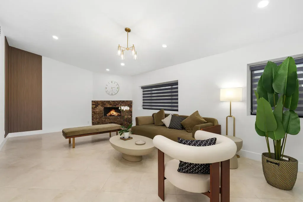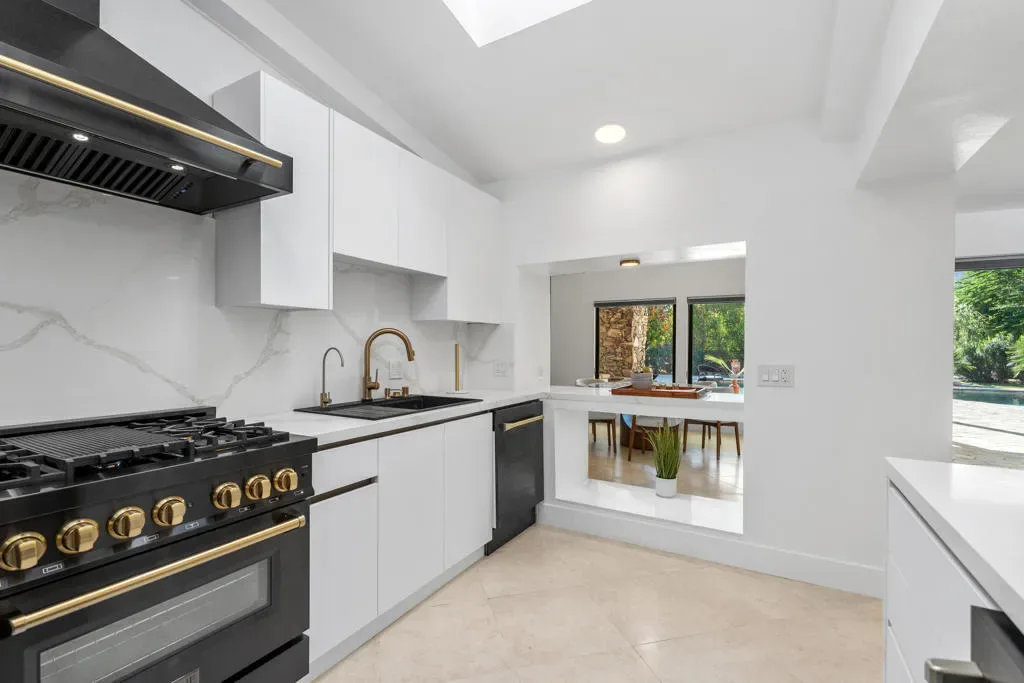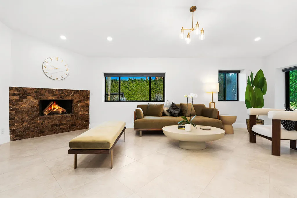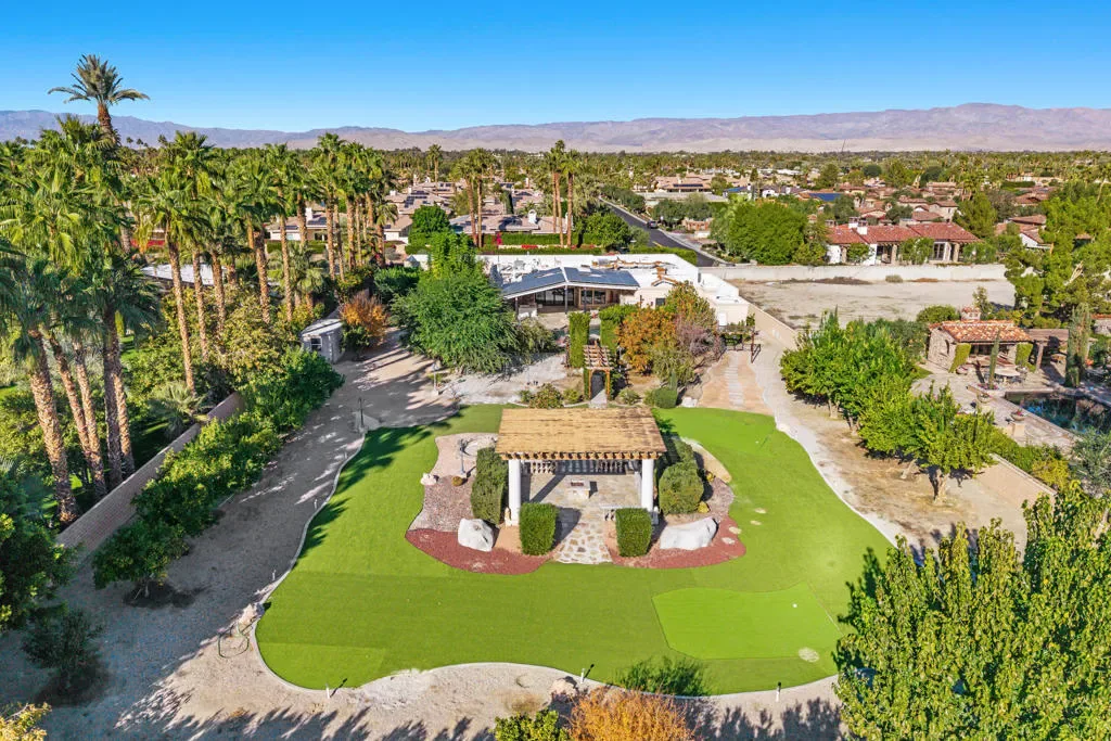 Welcome to 72114 Follansbee Rd, a fully remodeled Mid-Century private estate located in the highly sought-after Clancy Lane area of Rancho Mirage. Situated on a rare, flat, nearly 1-acre lot with no HOA, this property offers exceptional space, privacy, and flexibility, ideal for a true estate or compound-style living.Spanning approximately 4,695 sq ft, this 4-bedroom, 4-bath home has been thoughtfully updated with high-end finishes and modern design throughout. A privately gated entrance and circular driveway lead to a custom pivot front door, opening to soaring ceilings, an open-concept layout, and abundant natural light from new windows and sliding glass doors.Interior features include large-format porcelain tile flooring, designer accent walls, Restoration Hardware chandeliers, recessed LED lighting, updated HVAC systems, and modern interior doors and finishes. The gourmet kitchen features Shinoki wood cabinetry, quartz countertops, ZLINE Gold Signature appliances, and a built-in 60-bottle wine cooler.The spacious primary suite offers direct pool access and a spa-like bathroom with soaking tub, oversized shower, dual vanities, and a walk-in closet. Three additional guest bedrooms are located on a separate wing for added privacy.The expansive grounds are designed for resort-style living, featuring a pool and spa with water features, outdoor kitchen and bar, firepit seating, putting green, mature landscaping, and fruit trees. The flat lot provides ample opportunity for a tennis or pickleball court, guest house, or additional amenities.Additional highlights include a long private driveway with RV or guest parking, a 2-car garage, and owned full-roof solar. Conveniently located near El Paseo, The River, golf courses, The McCallum Theatre, and Eisenhower Medical Center.A rare opportunity to own a move-in ready estate property in one of Rancho Mirage’s premier neighborhoods.