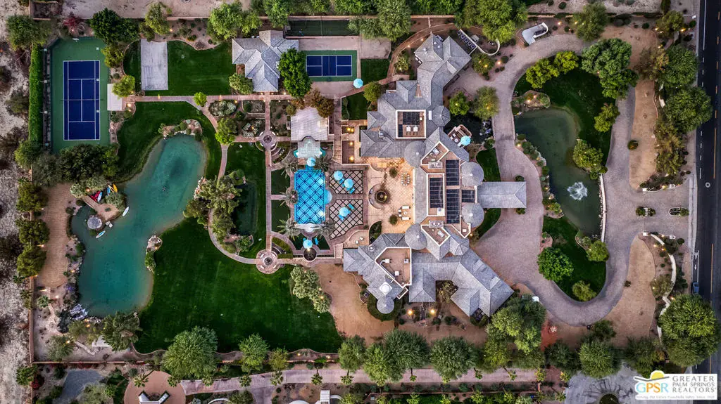 Luxury Live Auction! Bidding to start from $10,000,000! Buyers do not need to wait for auction date to submit an offer to stop the auction – loan or cash. Introducing the Exquisite Chateau Dumont. A One-of-a-Kind Resort Compound in Rancho Mirage. Experience the ultimate in desert luxury at this resort-like private estate, a true family sanctuary situated on nearly five acres in the heart of Rancho Mirage. Privately gated with a double drive entry and porte-cochere, this grand Mediterranean-style compound spans over 18,000 square feet of pure elegance and sophistication. Enjoy breathtaking mountain, lake, and garden views from every corner of the property. The estate offers 15 bedrooms, 13 bathrooms, plus an office, including a two-bedroom, two-bath detached guest house with full amenities. Inside, a dramatic Great Room welcomes guests with expansive living and entertaining areas, a custom bar, wine tasting room, formal dining lounge with fireplace, home theatre, and a billiard parlor/game room. The chef’s gourmet kitchen with gourmet professional appliances and separate butler’s prep kitchen make hosting effortless. Additional features include a gym, elevator, and garage space for up to five vehicles. The primary retreat features a sitting area with fireplace, built-in office, wet bar, and large walk-in closet with organization and ample storage, with French doors leading to covered lanai with misting system. The spa-inspired primary bath features a domed skylight for natural light, indoor garden, double enclosed shower, two water closets, and is complete with private sauna and a stunning roman rotunda spa. Designed for large-scale entertaining, the Great Room can also be repurposed as a Grand Ballroom for large events. The Great Room opens through multiple French doors to a Grand Terrace with central fountain, overlooking the resort-style pool, spa, and cascading waterfalls. Outdoor living includes a full kitchen and BBQ area, covered dining terrace with fireplace. The back lake, view pavilion, and championship tennis, pickleball, and basketball courts and panoramic VIEWS complete this rare offering. Equipped with a natural-gas microturbine that generates on-site electricity, a private water well to irrigate landscaping and refill the 3 onsite lakes, state-of-the-art security, and full smart home automation, this estate offers both luxury and sustainability. With its expansive grounds and premier desert location, this truly singular estate – unmatched anywhere in the world – could also serve as a remarkable backdrop for charitable events, fundraisers, galas, and other special gatherings. Proof of income required for all private showings.