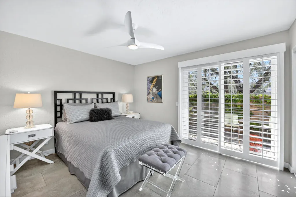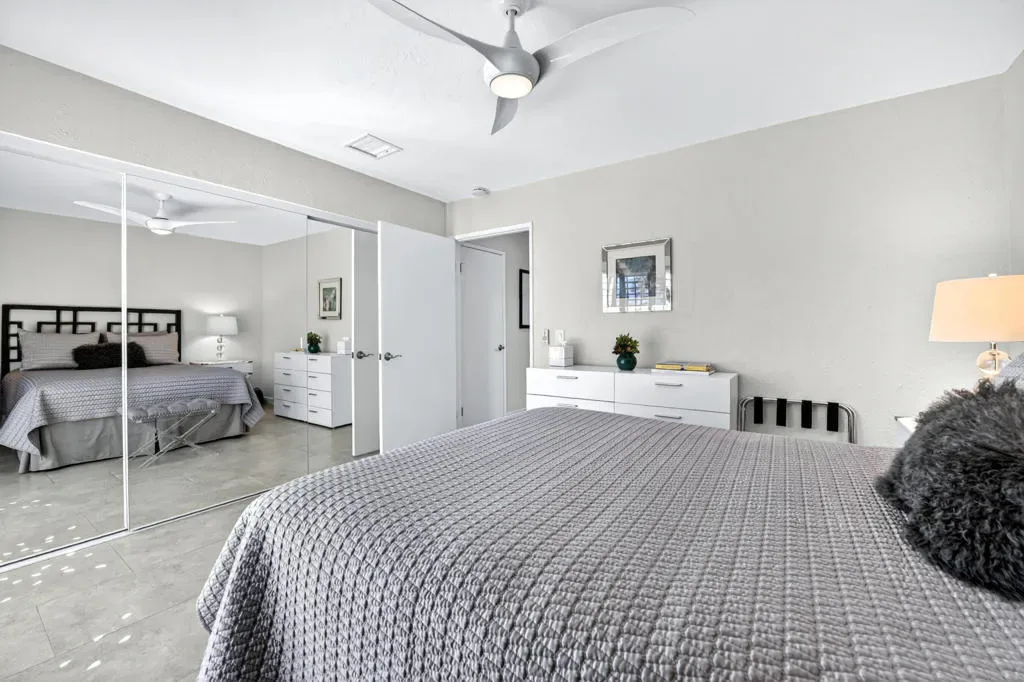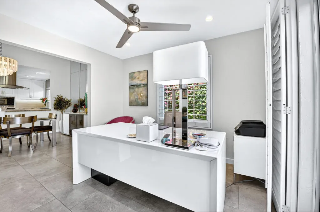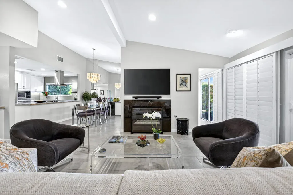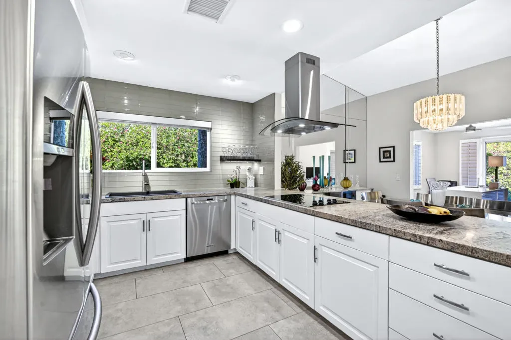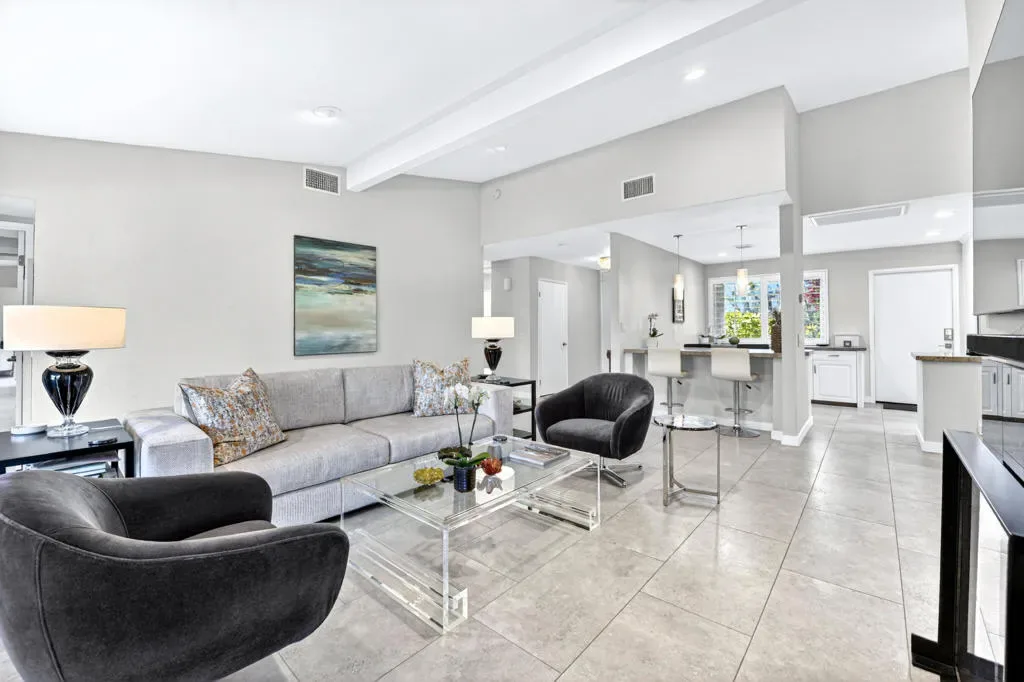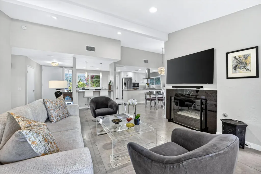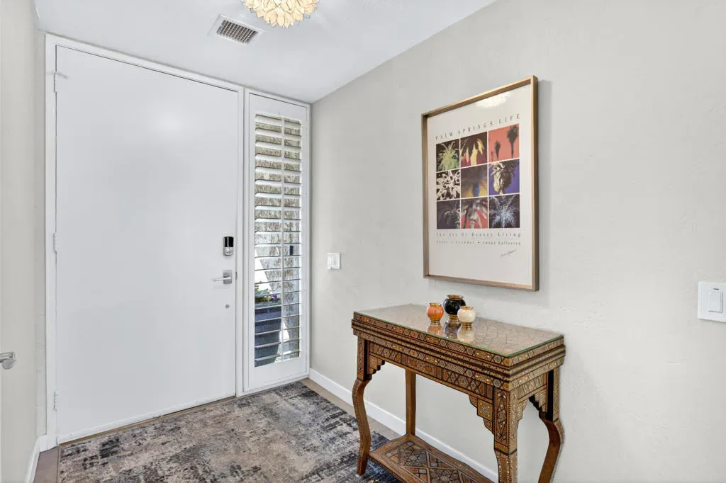 Located within the exclusive gated enclave of Rancho Estates, a boutique community entirely designed by renowned architect Donald Wexler, this beautifully reimagined Desert Modern residence offers a rare blend of architectural pedigree and refined contemporary living. Rancho Estates is comprised of just 28 detached homes arranged around a circular drive with shared amenities including tennis courts and a community pool, celebrated for its timeless design and serene desert setting. This extensively upgraded residence features designer upgrades throughout and showcases an open-concept floor plan filled with natural light. Expansive glass doors create a seamless connection to a private courtyard framed by lush landscaping and a tranquil water feature. Capturing both mountain and garden views, the home embodies the essence of indoor-outdoor desert living. The thoughtfully designed layout offers 3 bedrooms and 2 baths, including a spa-inspired primary ensuite with a calming, modern aesthetic. The kitchen is beautifully appointed with contemporary cabinetry, honed granite countertops, breakfast bar seating for four, and generous prep space, opening effortlessly to the main living and dining areas–ideal for entertaining. Additional highlights include custom built-ins, upgraded closet systems, and a thoughtfully designed, separate office, offering both functionality and style. A rare opportunity to own within a Donald Wexler-designed community in one of Rancho Mirage’s most architecturally significant enclaves.