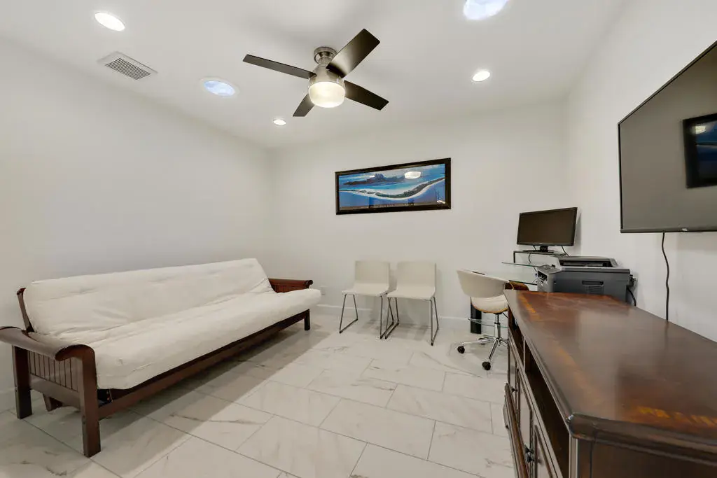 Discover this beautifully renovated condo in Rancho Las Palmas Country Club, featuring 2 bedrooms plus an office and 2 baths. The converted atrium serves as a functional office space and includes a futon sleeper for added convenience. The modern kitchen boasts updated appliances and stylish finishes, while upgraded designs and features enhance the entire home. Step outside to the east-facing patio that overlooks the golf course, equipped with an awning, ideal for outdoor relaxation. Don’t miss this fantastic opportunity!