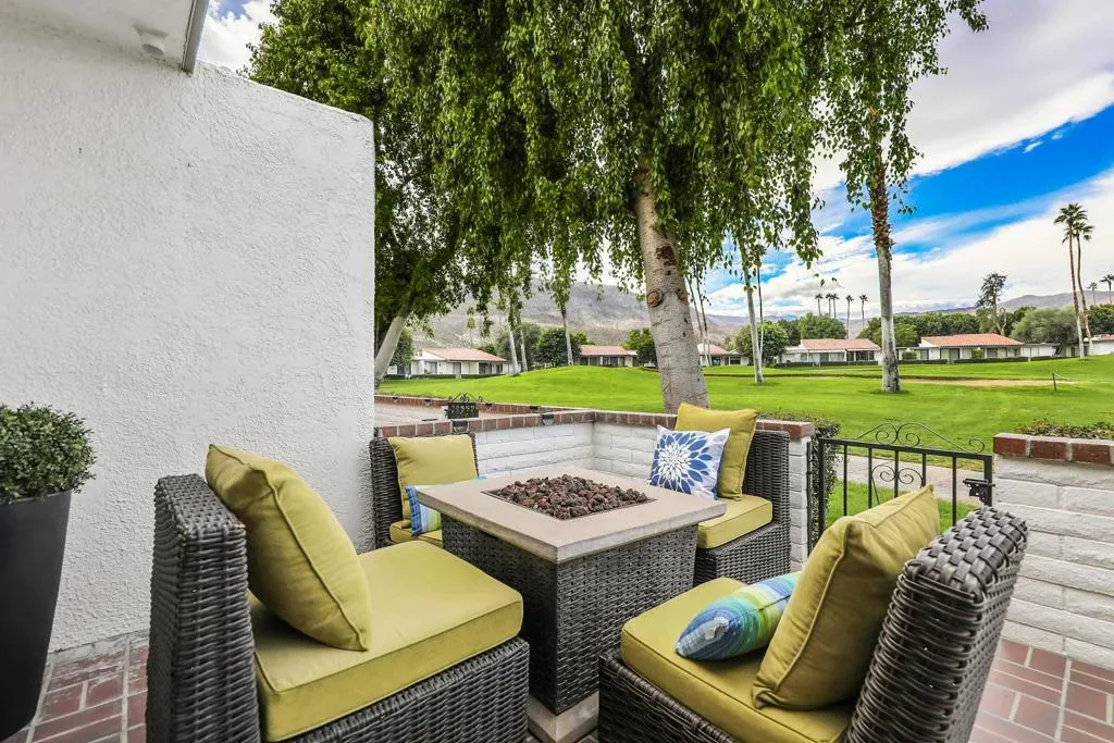VIEWS, VIEWS, VIEWS! From the second you step inside, you’ll see why this home stands out–featuring some of the most incredible views in Rancho Las Palmas. This beautifully furnished rental offers an easy, elevated desert lifestyle with everything ready for immediate enjoyment.Designed with comfort and flow in mind, this 2-bedroom, 2-bath home includes an open living area plus an additional space that’s perfect for entertaining, working from home, or simply relaxing. The kitchen has a fresh, modern look with quartz countertops, sleek cabinetry, and stainless steel appliances.The layout is ideal for privacy, with bedrooms situated on opposite sides of the home–perfect for guests or shared living. The primary suite includes dual sinks and an updated walk-in shower for a clean, contemporary feel.Out back, the patio is where this home really shines. Enjoy sweeping mountain and golf course views, multiple seating areas, and a fire feature that makes it perfect for both quiet evenings and entertaining.Living here also means access to Rancho Las Palmas Country Club, with amenities that include a 27-hole golf course, tennis facilities, multiple pools and spas, and a full fitness center.Turnkey furnished and ready to go–just move in and start enjoying the desert lifestyle.
