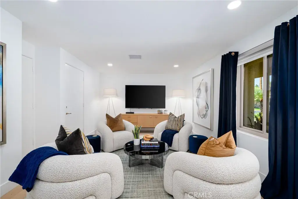 Discover unparalleled sophistication in this stunningly reimagined former model home, nestled within the prestigious Rancho Mirage Country Club. Spanning 3,250 sq. ft., this 3-bedroom, 3.5-bath masterpiece seamlessly blends timeless elegance with modern luxury. Showcasing rare red cedar tongue-and-groove vaulted ceilings in the entry, living room, stairwell, and primary suite, the home exudes warmth, character, and architectural charm. Every detail of this home has been thoughtfully designed and meticulously updated to create an inviting yet stylish retreat. The kitchen, a true chef’s dream, boasts contemporary finishes, sleek cabinetry, an extended center island, and modern appliances. Perfect for entertaining or casual dining, this space effortlessly complements the open-concept floor plan. Wide plank white oak flooring graces the main living areas, while solid core oversized pocket doors connect each space seamlessly, flooding the home with natural light. No element has been overlooked in the home’s extraordinary transformation. The bathrooms have been fully updated with modern fixtures and finishes, reflecting a refined design aesthetic. Fresh interior paint highlights a neutral, sophisticated color palette, while updated electrical systems, including can lighting, elevate functionality and ambiance throughout. Every room has been curated to balance style with comfort, making this home truly turnkey. Step outside and experience the ultimate in desert living. The backyard is a private oasis featuring a newly replastered pool and spa with updated tile, perfect for relaxation or entertaining. An integrated mister system ensures comfort even on the warmest days, while the inviting patio area provides a serene escape for outdoor gatherings or quiet solitude. Additional upgrades include energy-efficient windows, modernized flooring, and enhanced appliances and equipment, all designed to ensure an effortless living experience. Located within one of the desert’s most coveted communities, this home epitomizes elegance, functionality, and attention to detail. Whether hosting lively gatherings or savoring peaceful moments, this property offers the perfect blend of beauty and practicality. Don’t miss this rare opportunity to own a home that is more than a residence—it’s a sanctuary of style and sophistication. Your dream home awaits.