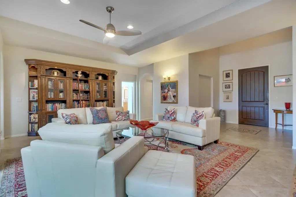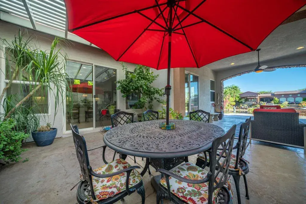 Enjoy desert living at its finest in the unique gated 9-acre lake community of Santo Tomas. This stunning waterfront home embodies all the elements you could possibly desire in a desert retreat! This rarely offered model perfect home has 4 bedrooms, 4.5 bathrooms, including an attached guest casita, and many designer upgrades. The curb appeal will immediately impress you, including a gated courtyard then enter the homes foyer that opens to the great room and looks out to the heart of the home; a large central covered patio for you to relax, entertain or even enjoy alfresco dining. The stylish oversized island kitchen features granite counter tops, professional stainless appliances and flows into the dining area & family room creating the perfect space for entertaining and casual living. The master suite offers access to the covered patio and overlooks the lake. The yard is sure to impress with an infinity pebble-tec pool & raised spa, cascading waterfall, conversation fire pit all with striking lake front views. This is the home you have been dreaming about!