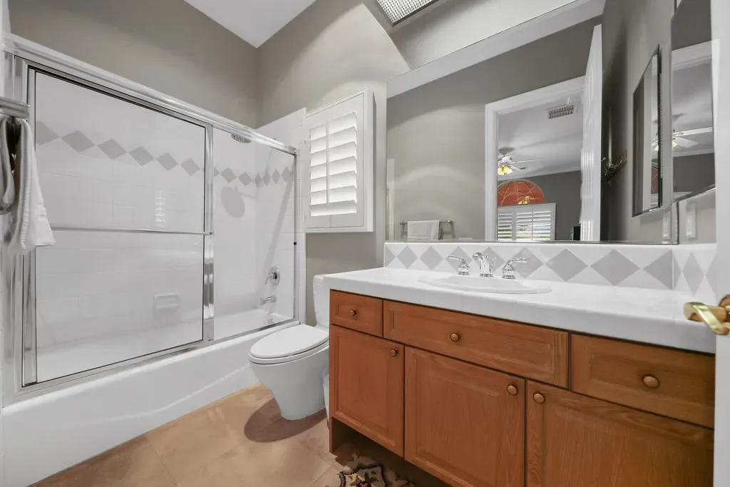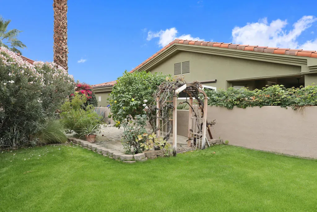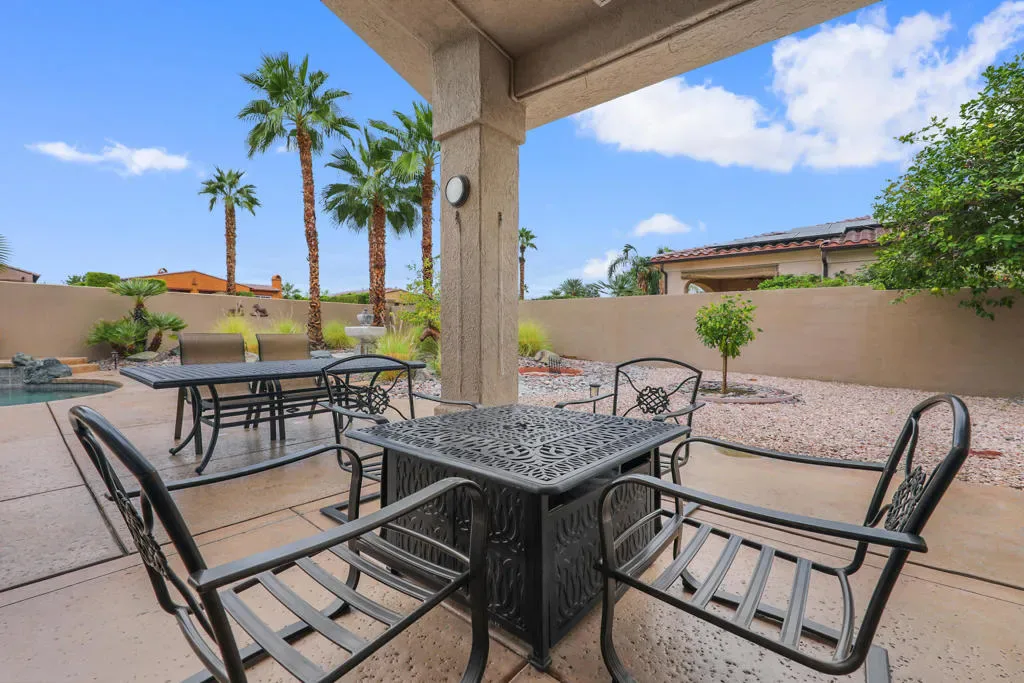 This is an incredible opportunity to own a picture-perfect home in the heart of Rancho Mirage, ideally located in the highly sought-after St. Augustine community. Featuring 4 bedrooms and 3 baths (including a private casita) and a 3-car garage, this home offers both luxury and comfort.Step through the grand entryway highlighted by an elegant crystal chandelier, and into the spacious living room that opens seamlessly to a stunning backyard oasis. Enjoy a large Pebble Tec pool and spa, a covered patio, fruit trees, and breathtaking mountain views–perfect for relaxing or entertaining.Inside, the gourmet kitchen is a chef’s dream with a large center island, stainless steel appliances including a Wolf double oven, KitchenAid refrigerator, microwave, wine cooler, and dishwasher. Rich custom dark wood cabinetry is complemented by slab granite countertops and a stylish backsplash.The primary suite offers a spacious retreat with an ensuite bathroom, dual vanities, and a walk-in closet. Two additional bedrooms and a full bath complete the main home. The private courtyard casita provides a luxurious space for guests or a home office.Additional upgrades include crown molding, plantation shutters, tile flooring throughout, newer AC, recent water heater, garage swamp cooler and epoxy-coated garage floor.Residents of St. Augustine enjoy tennis courts, pickleball, and walking paths, with the option to join nearby Mission Hills Country Club for golf, tennis, pickleball, and social events.Don’t miss this stunning Rancho Mirage home that perfectly combines elegance, comfort, and resort-style living!