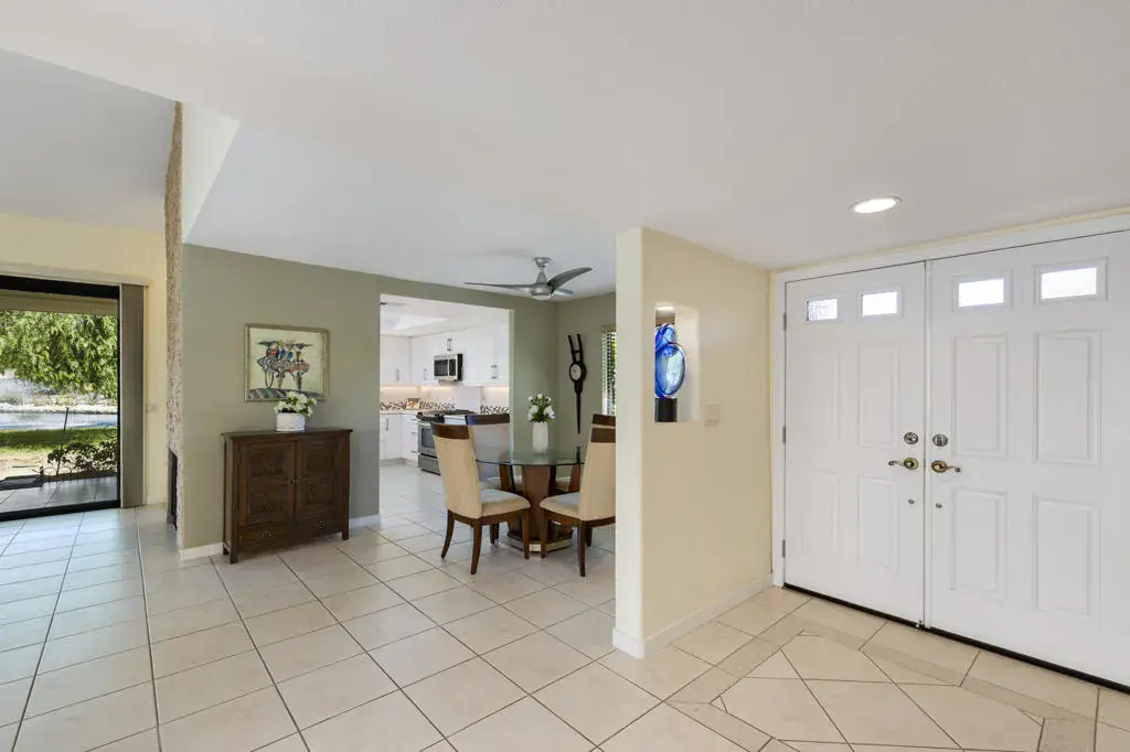 Turnkey Lakeside Condo at Sunrise CC!This 3 Bed, 2 Baths end unit, Barcelona Plan has panoramic views of the Lake.Resort Style Living awaits! This upgraded condo features Quartz Counter Tops, Custom Cabinets, Stainless Steel Appliances, Remodeled Baths, Tile Floors, Dual Pane Windows, Solar Panels, and a cozy Fireplace.Enjoy the private patio with sweeping Lake views, fountains, Swans and lush trees. Just steps from the Pool & Spa, Clubhouse. Sunrise CC offers and 18 Hole Golf Course, Tennis and Pickle Ball Courts.Also a Fitness Center, 21 Pools and Spas,Dining Room and Lounge. Close to the River Complex, Shops, Restaurants, Theaters. This Home is offered turnkey furnished, ready to move in and enjoy all that Sunrise CC has to offer.