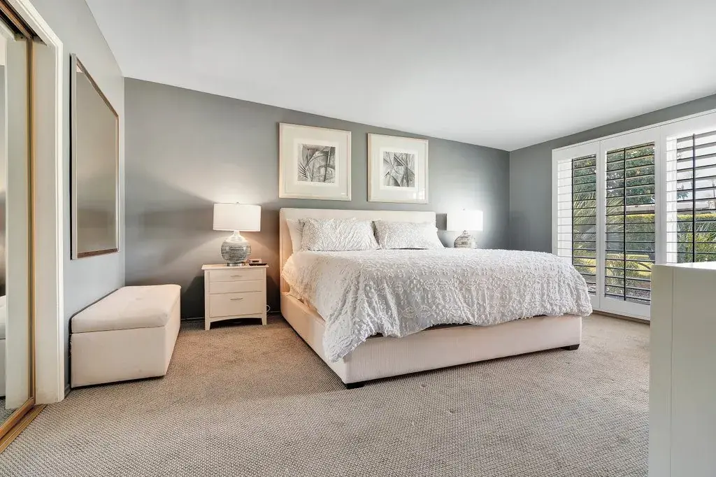 The updated kitchen offers new appliances and stylish finishes, blending modern convenience with classic mid-century sensibility. The home includes three bedrooms and three baths, featuring a generous primary suite with excellent closet space and a beautifully remodeled bathroom with a walk-in shower. The guest bedroom also enjoys an updated ensuite bath with a double-sink vanity, while the third bedroom—originally designed as a maid’s room—features its own three-quarter bath, ideal for use as a home office or studio. Separate TV room with pocket doors and glass sliding door to rear yard.