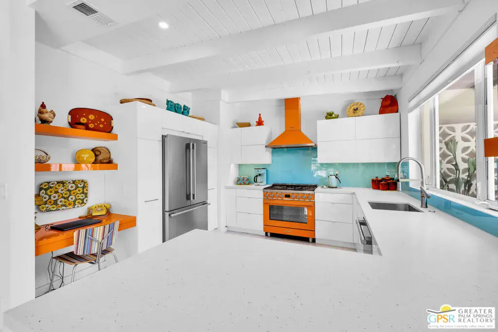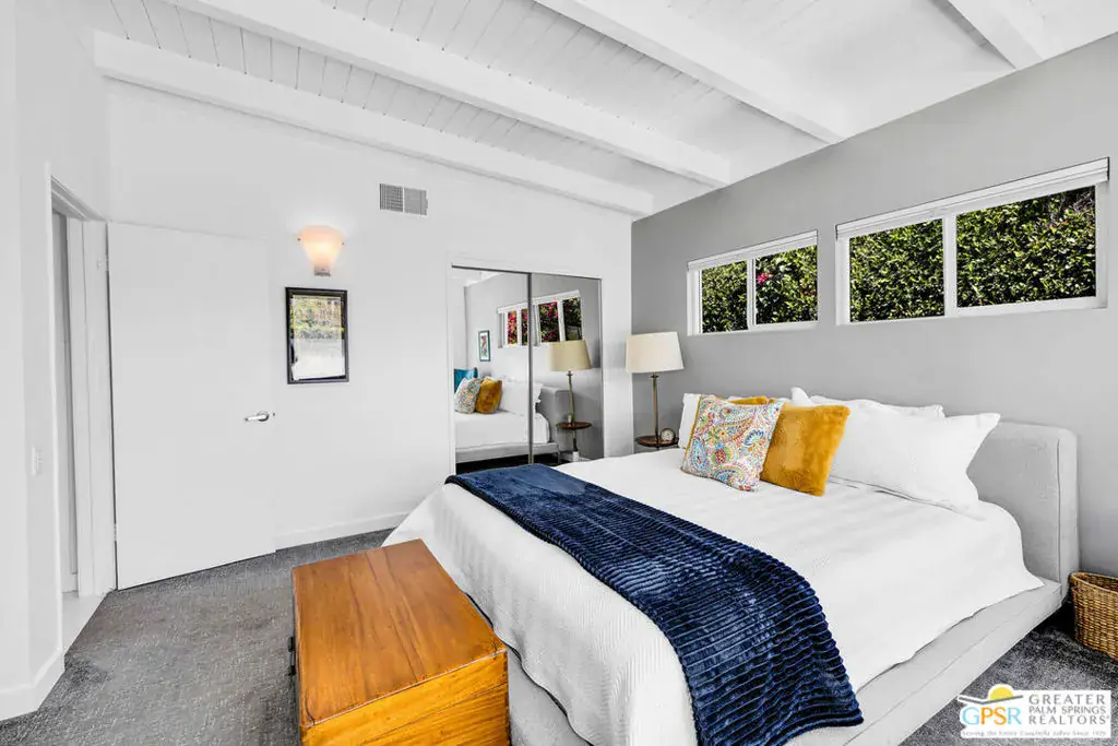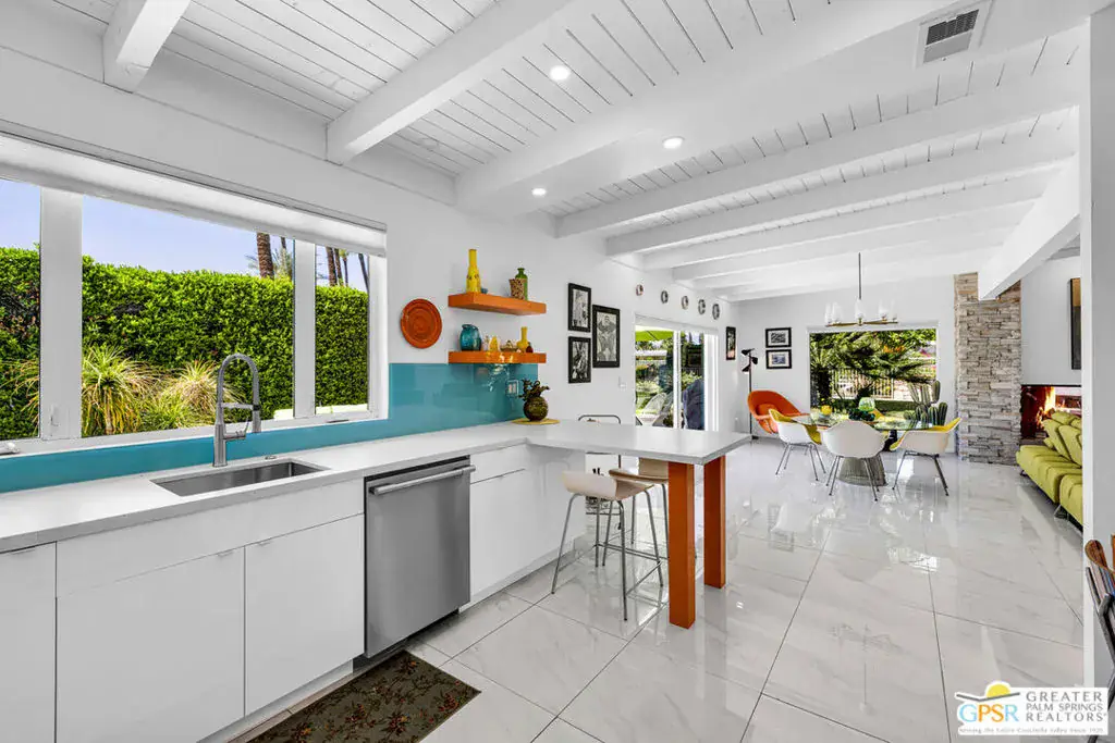 Rare opportunity to own your own piece of history. This meticulously restored 1958 iconic architectural home, designed by William Krisel, offers the perfect blend of Mid Century history coupled with modern elegance. The large open great room features a grand classic fireplace. The vibrant gourmet kitchen offers high end chef’s appliances as well as large peninsula seating and a stylish work nook, all open and flowing to the dining area. This home is filled with natural light through the large windows all around. Additionally, there are two large primary suites, both en suite with full baths. The powder room off the great room is a wonderful addition for parties and get togethers. Hang out on the gorgeous patio outdoor living area, surrounded by lush landscape and citrus trees, ideal for evening outdoor dining. The front yard is privately secluded with its own hedge, landscaped with plush astro turf, perfectly inviting for hanging out with family, friends and pets. A two car garage included to house pool toys, bikes, and your dream sports car. Tamarisk Ranchos 1958 by William Krisel is a resort-style community featuring 16 homes around the central pool area, with illustrious views of the San Jacinto mountains. This architectural historical home has been prominently featured on the Palm Springs Modernism Tour, and also carries it’s own historical designation, allowing the owner to benefit from the Mills Act. Nestled in Rancho Mirage, the Playground of the Presidents, on Fee land (you own the land), within close proximity to world class shopping, dining, golf, hiking and culture