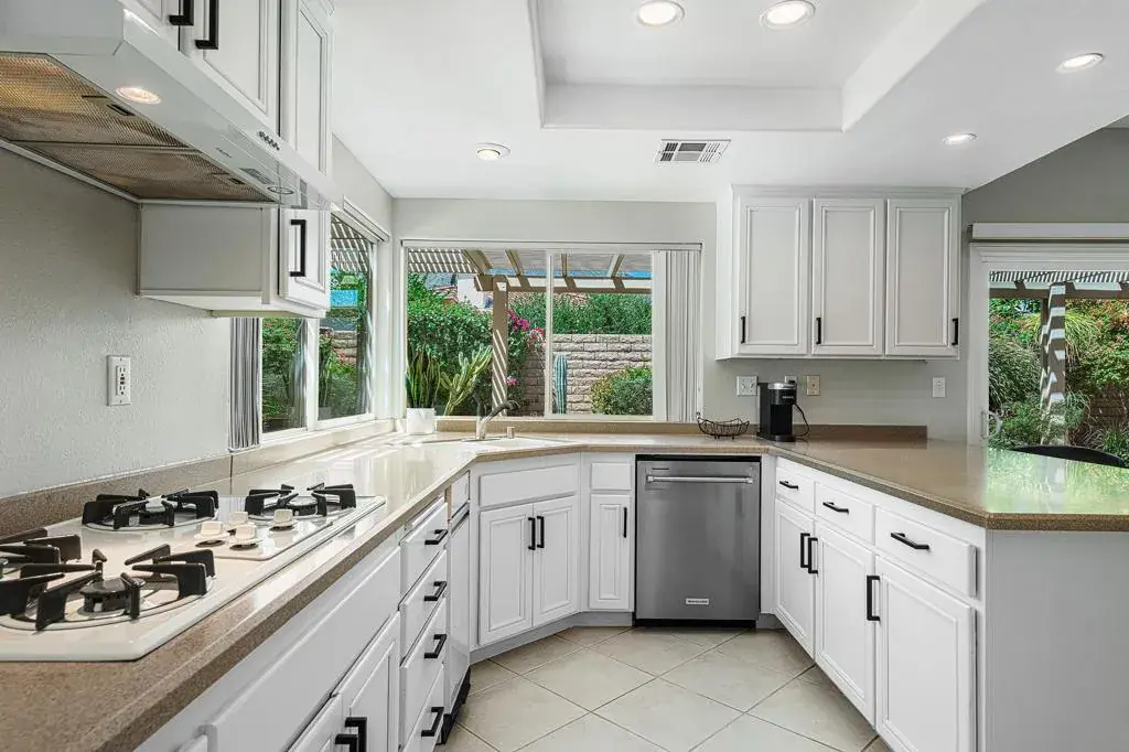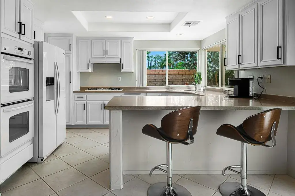 Discover tranquility in this immaculately maintained single-story home, nestled within a gated community that’s close to everything yet peacefully tucked away. As you step inside, prepare to be impressed by soaring 10-foot ceilings and a wall of windows that flood the space with natural light. The open-concept living and dining areas create an ideal setting for entertaining, while a two-sided gas fireplace adds a cozy touch for those cool desert evenings.This 2-bedroom, 2-bathroom residence boasts a thoughtful split-bedroom design, ensuring privacy for the primary suite. An additional office with a pull-out bed offers versatility for guests or remote work. Dual HVAC systems provide year-round comfort, and a gated front patio with a charming water feature welcomes you home.Step outside to your private oasis, featuring a wrap-around Alumawood covered patio, a serene water feature, and a built-in outdoor bar and BBQ area perfect for al fresco dining. The community amenities are equally impressive, with two sparkling pools, three hot tubs, and beautifully landscaped grounds with walking paths.Located near one of the community pools yet set back for privacy, this home offers the best of both worlds. The neighborhood’s hidden location shields you from the wind while keeping you close to all the attractions Rancho Mirage has to offer. For dog lovers, the nearby Civic Center Dog Park is just a short drive away.Available for seasonal rentals