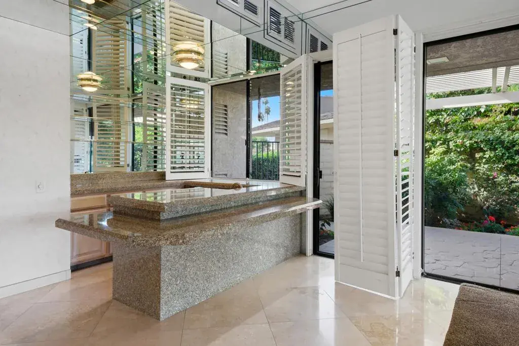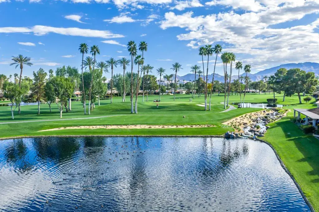 VIEWS, VIEWS, VIEWS!! This East facing expanded en ensuite 3bd/3 ba Broadmoor model situated on the lake & green at the 8th hole of the beautifully remodeled championship golf course at The Springs Club, boasts spectacular golf course views looking across the green on the par 3 8th hole to the tee/fairway of the par 5 9th hole. Located on a quiet interior street, this lovely location is ready for your personal touches. Featuring a wrap around back patio, with mist system, to enjoy the golf course & our desert outdoor lifestyle perfect for entertaining friends & family. The kitchen features high-end appliances, granite counters and upgraded cabinetry. THIS HOME IS A MUST SEE! The Springs is a premier country club located across from the Eisenhower Medical Campus, close to world class shopping/dining & the McCallum Theater for the Performing Arts.Add in a newly renovated golf course & remodeled clubhouse, 2 restaurants, fitness center, courts pavilion and a lively social scene, THE SPRINGS – ITS’S WHERE YOU BELONG.