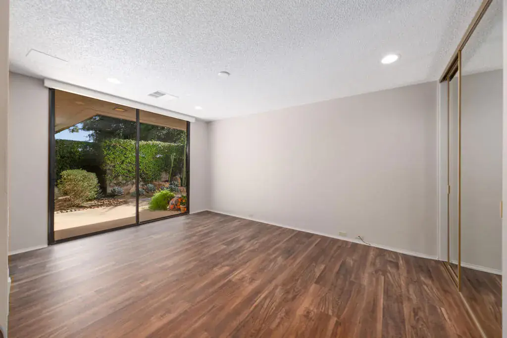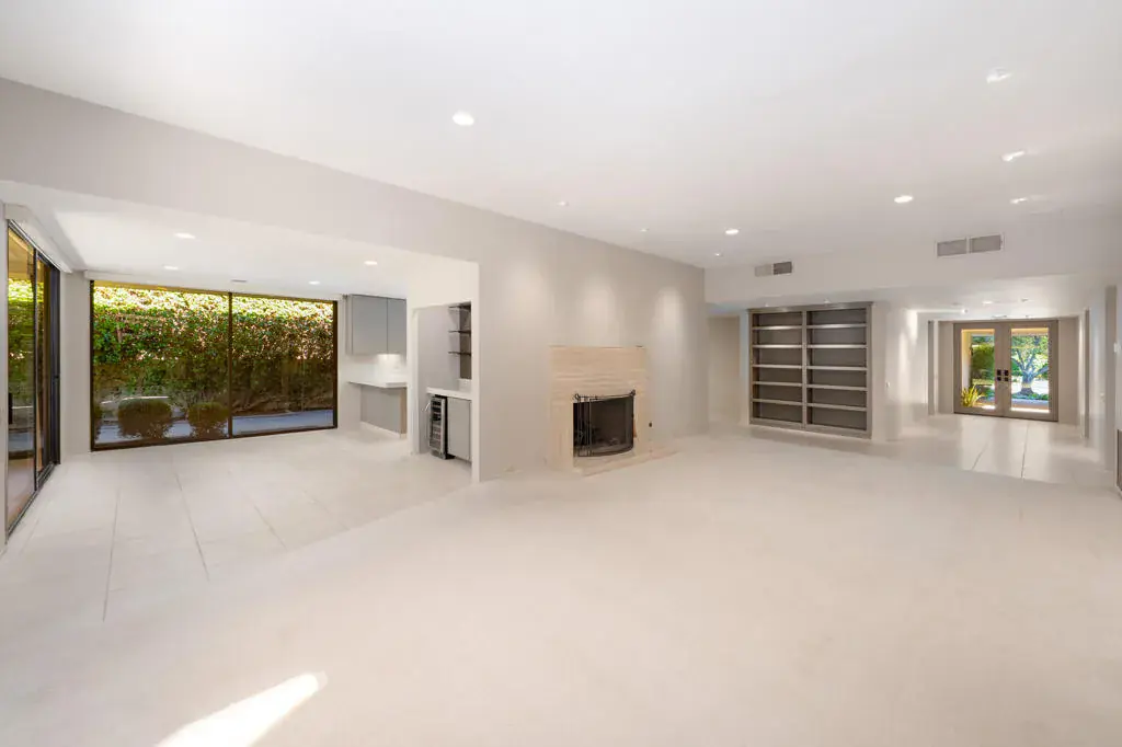 Welcome to this newly refreshed 4 bd, 4 bth residence located in a quiet and undisturbed part of the beautifully maintained community, The Springs. The entire interior has been reimagined with a clean and neutral palette all with an eye to creating a sense of serene comfort throughout.Mature trees greet you as you step inside the formal entry into a spacious family room with a travertine covered fireplace and a wall of sliding doors to the patio and views beyond. A wet bar and breakfast room adjoin the recently renovated kitchen with all new quality appliances, new countertops, refreshed cabinet faces and updated hardware.The nearly 3000 sf interior has been freshly painted with the primary suite enjoying an updated double vanity ensuite bathroom and direct access to a partially covered patio. In addition, there are 3 generous bedrooms, two of which feature updated ensuite bathrooms. Another bedroom enjoys an updated Jack and Jill bathroom configuration making it an ideal flex room connecting to a lovely landscaped front patio. Outside, the back patio area with mature landscaping and stunning westward views, can be enjoyed year-around with its automatic awning. The two-car garage includes a dedicated golf cart space.The Springs offers numerous resort-style amenities including multiple swimming pools, tennis and pickleball courts, championship golf, a fitness center, spa services, and several dining venues–all within a secure, 24 hr guard-gated environment. Fee Land (You own the Land).