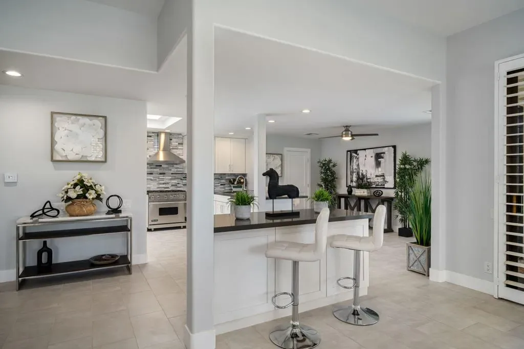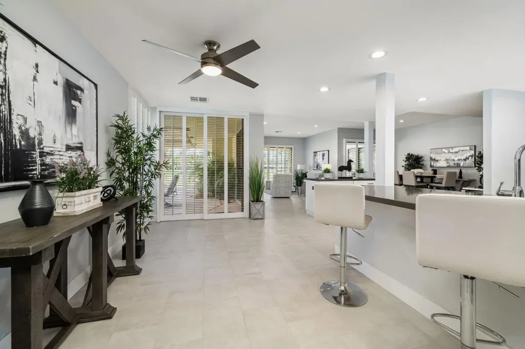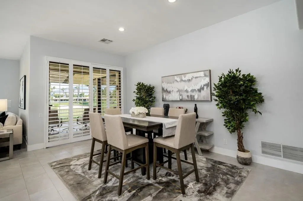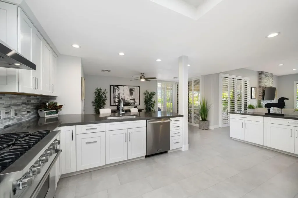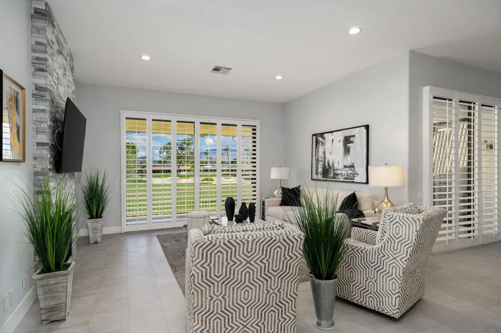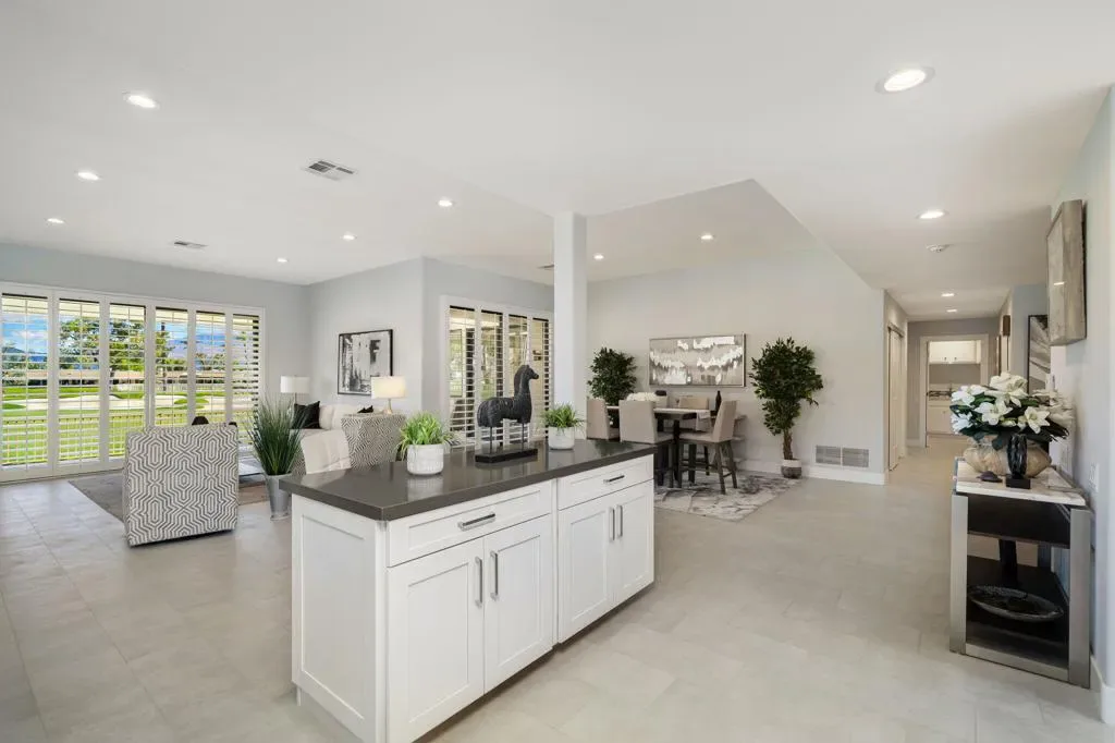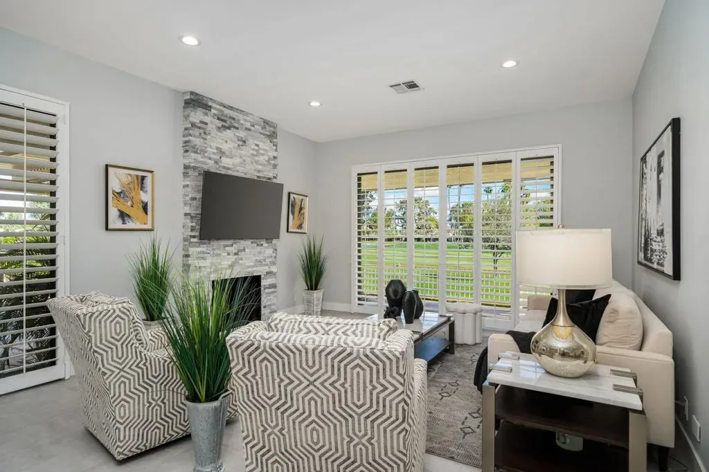 Views, Views, Views! Experience resort-style living in this fully renovated, never-lived-in builder’s home, ideally positioned on a rare double fairway lot in the iconic Springs Country Club in the heart of Rancho Mirage. Perfectly situated on the 11th and 12th fairways, this exceptional residence captures breathtaking south-facing panoramas of the San Jacinto Mountains, tranquil lakes, and swaying palms–offering approximately 280 of unforgettable desert beauty.A lush, landscaped approach welcomes you with mature palms, succulents, and vibrant flowering flora, leading to a private courtyard and grand double-door entry. Inside, a light-filled, open-concept floor plan showcases soothing desert tones–soft grays, creams, and beiges–complemented by oversized tile flooring and 5-inch plantation shutters throughout.The stunning chef’s kitchen is the heart of the home, featuring a large granite center island, brand-new Viking appliances, and seamless flow into the living and dining areas–ideal for both entertaining and everyday living. Walls of glass open to a wraparound patio, creating the ultimate indoor-outdoor experience with sweeping golf course and mountain views.This highly sought-after Shaughnessy floor plan offers three spacious en-suite bedrooms, each beautifully appointed for comfort and privacy. The luxurious primary suite is a true retreat, complete with spectacular fairway views, a spa-inspired bath with dual vanities, new cabinetry, an oversized soaking tub, glass block accents, and a generous walk-in closet. A versatile bonus nook off the primary suite provides the perfect space for a home office or cozy reading lounge.Additional highlights include designer chrome fixtures throughout, a newly pavered driveway, an oversized front patio ideal for entertaining, and a quiet cul-de-sac location in the heart of the community.Offered furnished, this rare and extraordinary property combines impeccable design, premium location, and unmatched views–an exceptional opportunity for the discerning buyer seeking the very best of desert luxury living.