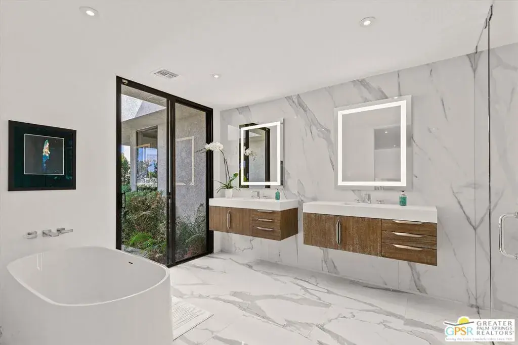 The Shaughnessy Sanctuary | The Springs Country Club with Immediate occupancy available! Sophisticated design meets carefree living: Experience a masterpiece of refinement in this meticulously remodeled 2,950-square-foot residence. Nestled within the tranquil inner sanctuary of The Springs Country Club, this highly sought-after Shaughnessy floor plan has been reimagined for the modern epicurean. From the ten-foot ceilings and marble fireplace to the wall-to-wall designer upgrades, every inch of this home exudes luxury without the burden of high-maintenance upkeep and save big on double pool/spa service, maintenance and heating fees with use of HOA pool just around hedge that’s rarely used. The ultimate in sophisticated “lock-and-leave” living. Culinary & Suite Excellence: The gourmet kitchen is a focal point of function and style, featuring a skylit breakfast island and a premier Fisher & Paykel appliance suite, solid quartz surfaces, including column refrigeration and dual ovens. The intelligent layout offers maximum privacy with three full ensuite bedrooms (all king-sized compatible), including dual separated primary suites and a versatile guest wing/media office positioned off the foyer. A Private Oasis Without the Overhead: Step into your Tuscan-inspired 20×25 private courtyard a low-maintenance haven perfect for sunbathing or a safe pet retreat. While the courtyard offers space for a future private spa, owners can maximize their lifestyle budget by utilizing the adjacent HOA-maintained pool and spa. Enjoy pristine waters and mountain vistas without the duplicate expenses of private pool heating, cleaning, or weekly maintenance services. Premier Location & Amenities: Situated on a quiet, traffic-free cul-de-sac near the spectacular 48,000 SF Clubhouse, this home offers a “ready-now” lifestyle in one of the desert’s most prestigious communities. The monthly HOA fee includes: 24/7 guard gated community, roof maintenance (flat section last done in 2021), exterior painting every 6 years, wi-fi internet, Two DVR boxes with HBO & Showtime, social events, 9 tennis courts, 12 pickleball, 2 bocce ball, golfing, swimming and fitness center with 46 community saltwater pools and spas, 5 Lap pools! Plus, use of the Clubhouse and Oasis Cafe.