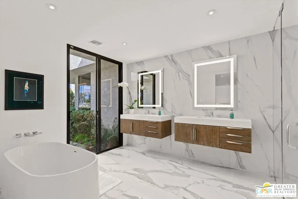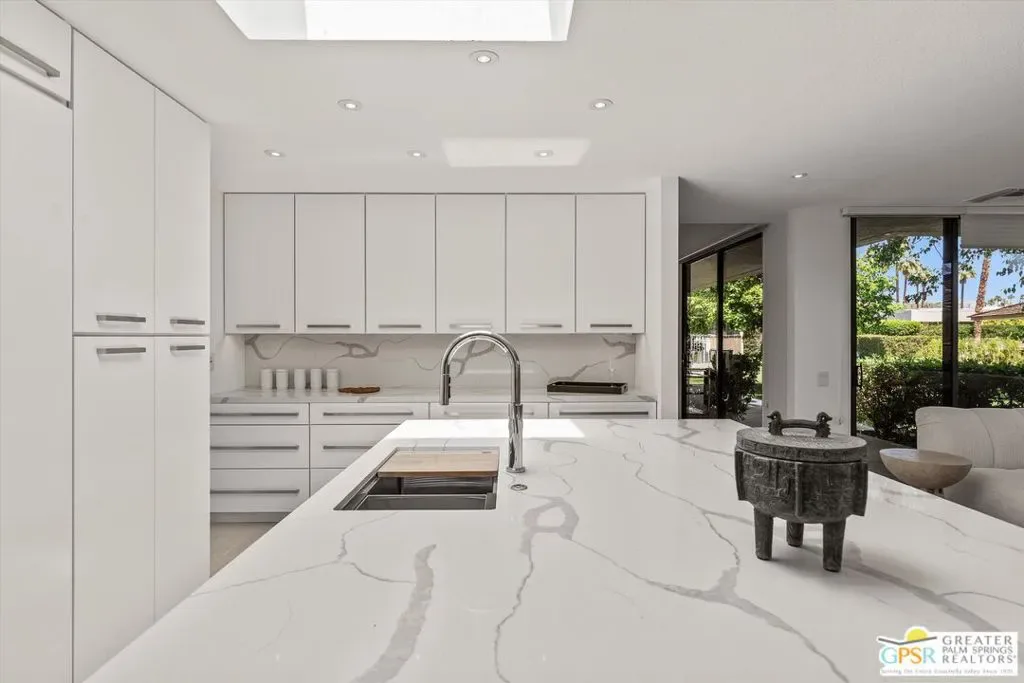 The Shaughnessy Sanctuary in the Springs Country Club with Immediate occupancy available! Sophisticated re-design meets carefree living: Experience a masterpiece of refinement in this meticulously remodeled 2,950-square-foot residence. Hidden within the tranquil inner sanctuary away from main streets and traffic, this highly sought-after floor plan has been reimagined for the modern epicurean. From the ten-foot ceilings and marble fireplace to the wall-to-wall designer upgrades, every inch of this home exudes comfort without the burden of high-maintenance upkeep. PLUS, save big-time on double pool/spa service, maintenance and heating fees with use of HOA’s (rarely used) pool just around the hedge. The ultimate in sophisticated “lock-and-leave” living. The gourmet kitchen is a focal point of function and style, featuring a skylit breakfast island and a premier Fisher & Paykel appliance suite, solid quartz surfaces, including column refrigeration and dual ovens. The intelligent layout offers maximum privacy with three separated full ensuite bedrooms (all king-sized compatible), including DUAL primary suites and a versatile guest wing/media office positioned off the foyer. A Private Oasis Without the Overhead: Step into your Tuscan-inspired 20×25 private courtyard a low-maintenance haven perfect for sunbathing or a safe pet retreat. While the courtyard offers space for a future private spa, owners can maximize their lifestyle budget by utilizing the adjacent HOA-maintained pool and spa. Enjoy pristine waters and mountain vistas without the duplicate expenses of private pool heating, cleaning, or weekly maintenance services. Situated on a quiet cul-de-sac near the spectacular 48,000 SF Clubhouse, this home offers a “ready-now” lifestyle in one of the desert’s most prestigious communities. The monthly HOA fee includes: 24/7 guard gated community, roof maintenance (flat section last done in 2021), exterior painting every 6 years, wi-fi internet, Two DVR boxes with HBO & Showtime, social events, 9 tennis courts, 12 pickleball, 2 bocce ball, golfing, swimming and fitness center with 46 community saltwater pools and spas, 5 Lap pools! Plus, use of the Clubhouse and Oasis Cafe.
