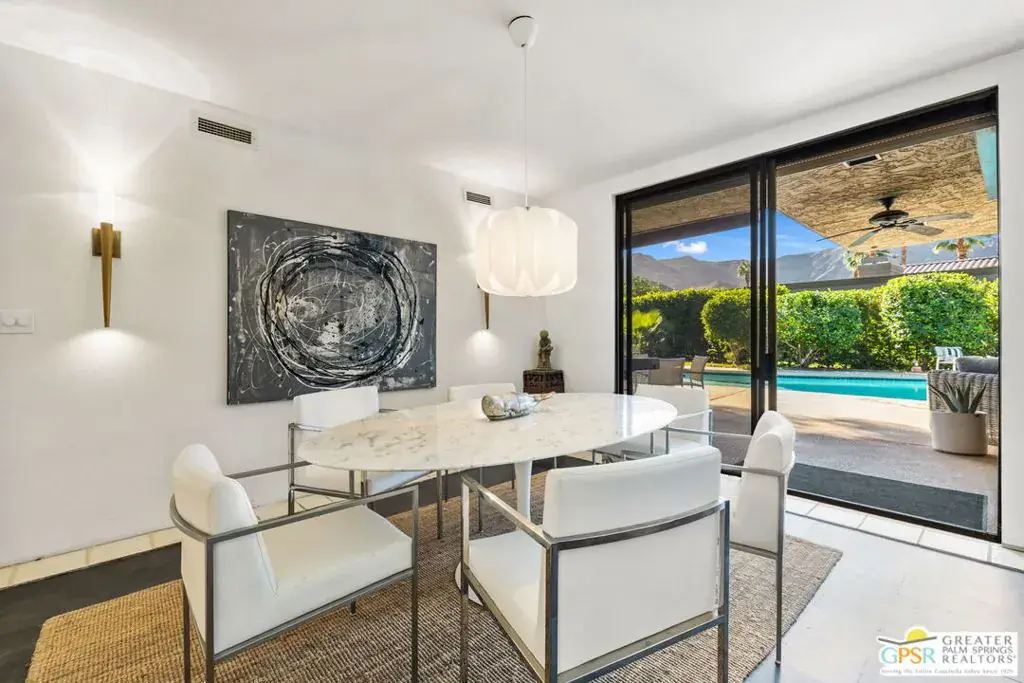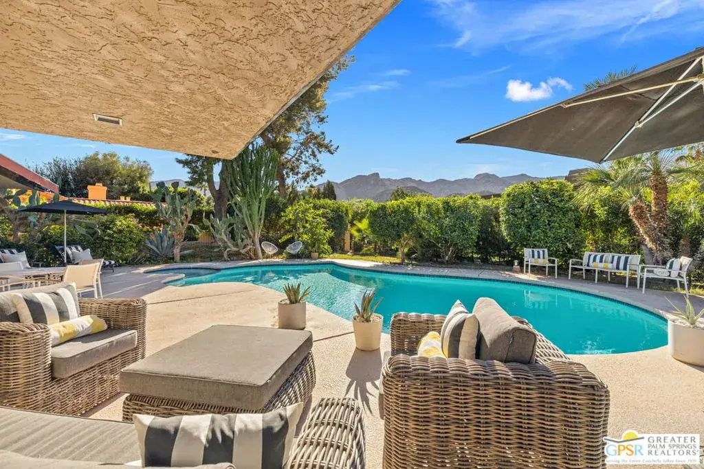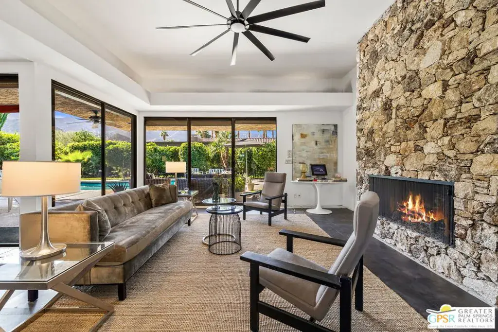 A Rare Architectural Offering designed by Gin Wong! Set behind the gates of Thunderbird Terrace and adjacent to the historic Thunderbird Country Club, this architecturally unique residence sits on just over half an acre and offers exceptional potential in one of Rancho Mirage’s most established luxury enclaves. The home reflects the bold modernism that defined the architect’s career. Wong helped shape postwar California architecture with work that includes the LAX Theme Building, CBS Television City, the Union Oil Center, and Beverly Hills’ iconic Union 76 station. During his tenure with Pereira & Associates, he also contributed to San Francisco’s landmark Transamerica Pyramid. His influence is evident here through the home’s clean modernist lines, natural stone elements, and distinctive pyramidal roof. A private gated courtyard introduces the layout and sets the stage for a light-filled interior. Inside, the main living areas feature walls of glass overlooking the pool and gardens, cove lighting, and a dramatic floor-to-ceiling stone fireplace. A hidden wet bar offers a nod to the home’s original entertaining style. The kitchen and family room connect seamlessly, opening to the outdoors through sliders and offering a convenient pass-through to the patio ideal for al fresco dining. The ensuite primary retreat enjoys tall ceilings, direct garden access, and an indoor-outdoor bath design with separate tub and shower. Two guest suites, each with their own outdoor connection, provide excellent separation and privacy. Additional features include generous storage, a laundry room, and a three-car garage. A compelling opportunity to restore or reimagine a Gin Wong designed property with strong architectural bones, expansive grounds, and a premier location within Thunderbird Terrace.
