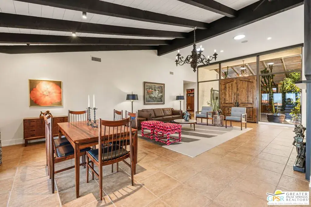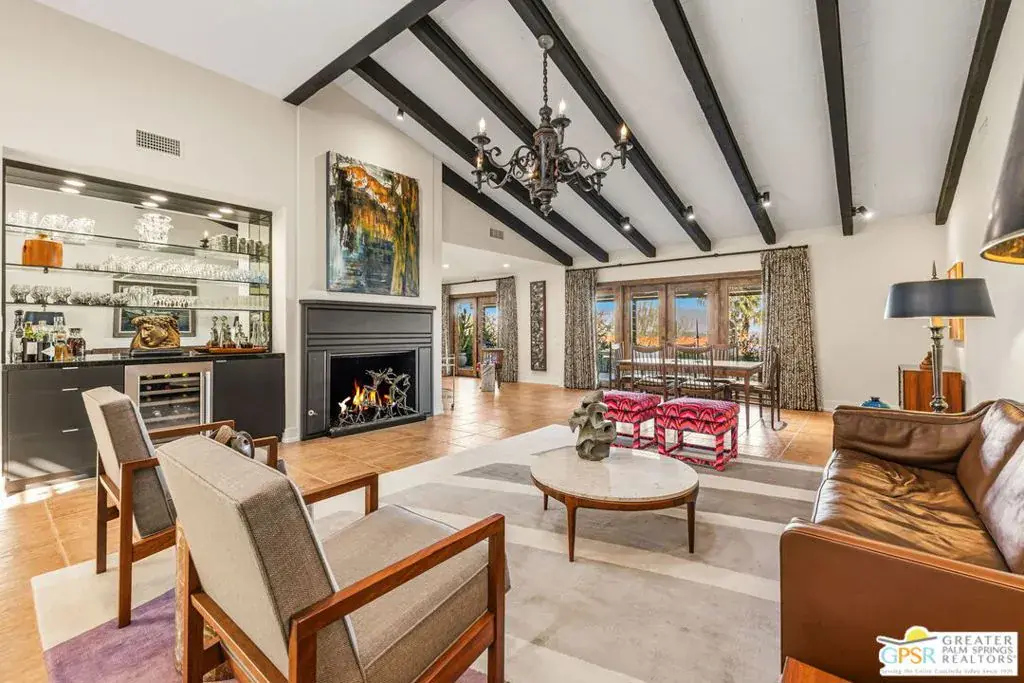 Positioned above the valley floor on fee simple land (no land lease) in prestigious Thunderbird Villas, this beautifully enhanced hillside 3 bedroom, 3 bath detached residence offers a rare combination of ownership security, infrastructure upgrades, and sweeping mountain-to-valley views. With most villas in the community situated on leasehold land, this private residence stands apart as a true long-term value – NOW OFFERED at a compelling new price. An ultra-private south-facing courtyard welcomes you with a sense of calm and arrival, framed by mountain scenery and designed for outdoor enjoyment. Double doors open to a light-filled living space ideal for entertaining, featuring vaulted ceilings with exposed wood beams, a gas fireplace, a custom bar, and French doors that extend to a long, view-oriented patio overlooking the valley floor and surrounding mountains. The adjacent kitchen blends style and function with modern cabinetry, quartz countertops, stainless steel appliances, and a large detached island. It flows seamlessly to the dining area and outdoor BBQ, creating an effortless indooroutdoor experience. The current owners have thoughtfully invested in both design and infrastructure improvements, enhancing comfort, usability, and overall quality throughout the home. The Primary Ensuite enjoys mountain and valley views, built-in speakers, direct patio access, a walk-in closet, and a private bath with walk-in shower. Junior Ensuite Two also offers views, a walk-in closet, and its own ensuite bath. Junior Ensuite Three is privately positioned with patio access and a bath featuring split vanities and a walk-in shower. An attached two-car garage adds everyday convenience. Thunderbird Villas is a guard-gated community with lush landscaping, community pools, cable and trash service, and golf-cart access to Thunderbird Country Club. With panoramic valley views out back, dramatic mountain scenery out front, and the peace of mind that comes with fee land ownership, this hillside retreat delivers exceptional desert living – just minutes from dining, shopping, and the best of adjacent cities like Palm Springs and Palm Desert.
