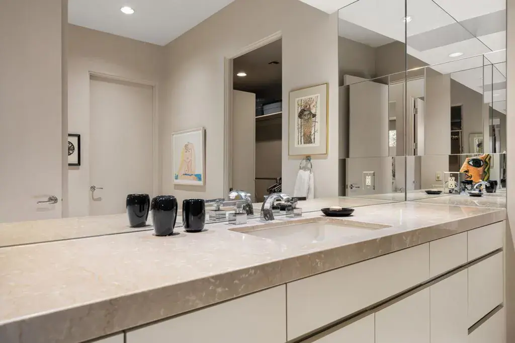 Stunning lakefront desert contemporary with breathtaking southwest mountain and water views, located in Waterford, one of Rancho Mirage’s most sought-after guard-gated communities. This beautifully designed residence offers four bedrooms and five bathrooms, including an expansive primary retreat with dual spa-style bathrooms and generous closet space. Light-filled open living areas flow seamlessly to a private outdoor oasis featuring a pool and spa, ideal for entertaining and everyday relaxation. The gourmet kitchen is appointed with premium appliances, designer finishes, and abundant storage. Recent upgrades include a newer-owned solar system and a newer roof, providing comfort, efficiency, and peace of mind. Perfectly situated near world-class golf, dining, shopping, and cultural amenities, this exceptional home delivers refined desert living at its finest.