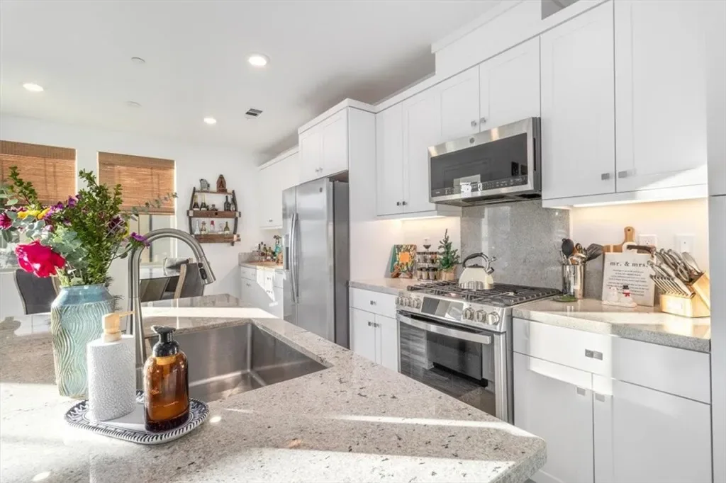 Thoughtfully appointed with modern finishes, the home features sleek cabinetry, a generous center island, in-home laundry, and the added convenience of a private garage. Solar panels enhance energy efficiency, helping reduce utility costs while providing valuable long-term savings—an exceptional benefit at this price point.