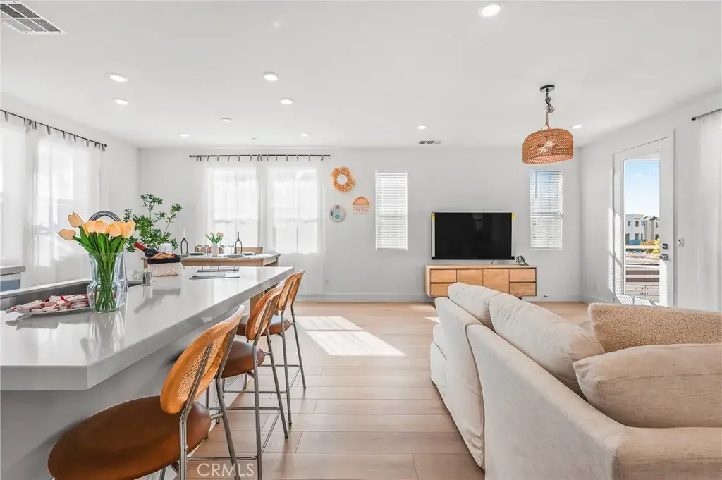 This spacious 4-bedroom, 3.5-bath home offers thoughtfully designed living space, combining modern functionality with refined finishes. Step inside to find upgraded hardwood flooring that flows seamlessly throughout the main living areas, adding warmth and elegance to the open-concept layout. The kitchen boasts sleek quartz countertops, a generous island, and stainless steel appliances—perfect for both everyday living and entertaining. Upstairs, the versatile loft provides a flexible space for a home office, playroom, or cozy reading nook. Enjoy abundant natural light enhanced by custom window treatments that bring both privacy and style. The primary suite features a spacious walk-in closet and spa-inspired bathroom with dual vanities and a large walk-in shower. Outside, you’ll love the private outdoor patio—ideal for morning coffee or evening relaxation. Residents of Rancho Mission Viejo enjoy access to world-class amenities, including resort-style pools, fitness centers, parks, farms, and scenic hiking trails.