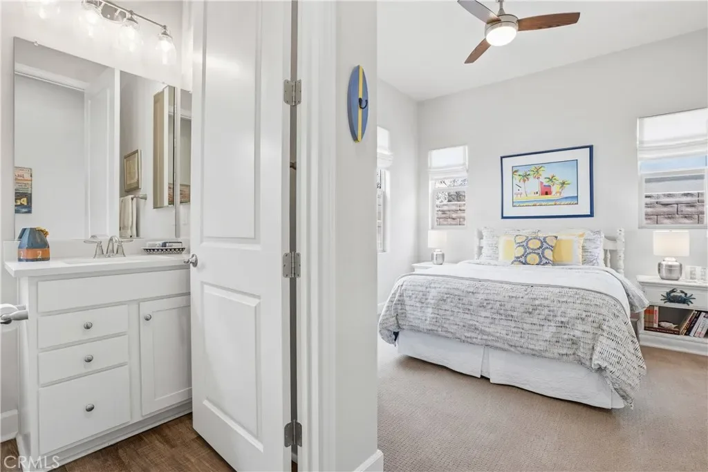 Welcome to 17 Puesto, a beautifully designed 55+ single-level home located in the highly sought-after Arista enclave of the award-winning community of Rancho Mission Viejo. Tucked at the end of a quiet cul-de-sac in the highly sought-after 55+ Gavilan neighborhood of Esencia, this beautifully designed home offers the perfect blend of comfort, privacy, and the relaxed lifestyle that makes Rancho Mission Viejo so special. With 2 bedrooms, 2.5 baths, plus an office and approximately 1,864 square feet, this residence was thoughtfully designed for easy everyday living and effortless entertaining. Step inside and you’ll immediately notice the openness of the floor plan and the natural flow between spaces. Large sliding panels open to the stunning covered lanai, creating seamless indoor-outdoor living and allowing coastal breezes to move through the home. Whether it’s morning coffee, afternoon reading, or hosting friends for an evening gathering, this space quickly becomes a favorite place to spend time. The kitchen anchors the home with white shaker cabinetry, quartz countertops, stainless steel appliances, and a 5-burner gas range. The private primary suite offers a peaceful place to unwind, featuring dual vanities, quartz countertops, a glass-enclosed shower, and a spacious walk-in closet. The secondary bedroom includes its own ensuite bath, creating a comfortable and private space for visiting family or friends. Additional highlights include fully paid solar, a tankless water heater, and an interior laundry room. With its peaceful cul-de-sac location and thoughtful design throughout, this home delivers the kind of quiet, comfortable living that makes every day feel a little more like a retreat. Beyond the home, you’ll enjoy a vibrant, resort-style lifestyle with exclusive access to private Gavilan 55+ amenities, including The Perch, The Hacienda, The Outlook, The BBQ Barn, and The Getaway. Stay active and connected with a state-of-the-art fitness center, saltwater pool, spa, cabanas, bocce ball courts, yoga studio, fire pits, and social lounges. And when the grandkids visit? You’ll have full access to Rancho Mission Viejo’s award-winning all-ages amenities, arcade, community farms, fitness centers, indoor basketball gym, putting green, Sports park, tennis and pickleball courts, parks, and events that make this community unlike any other.