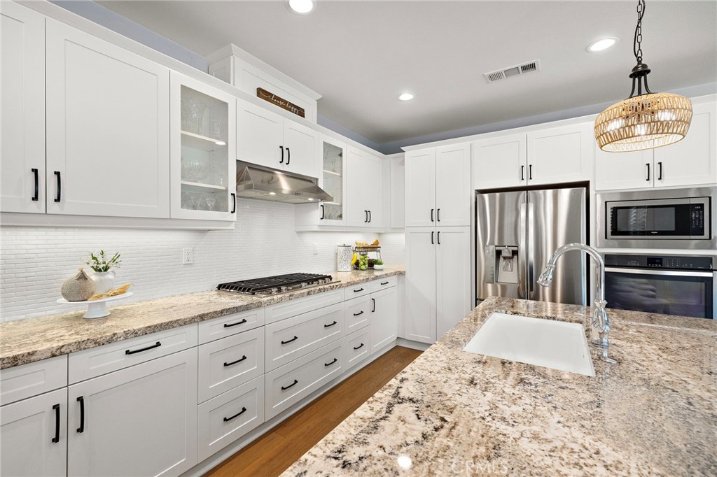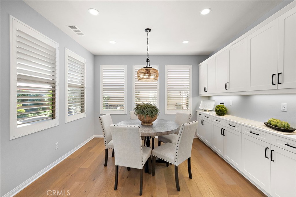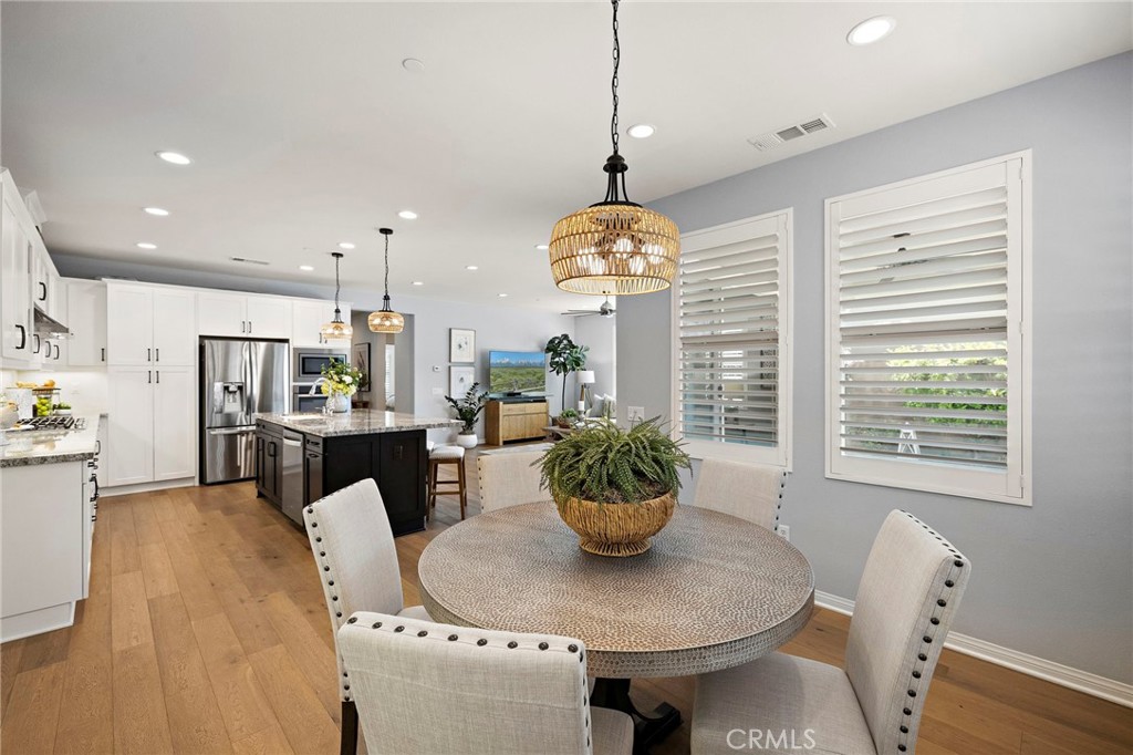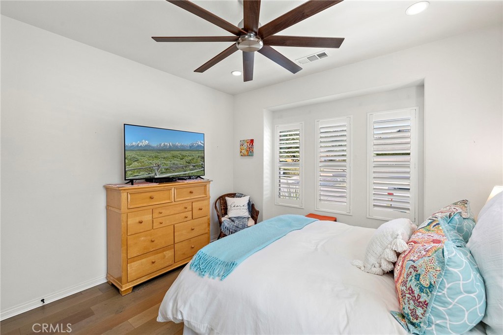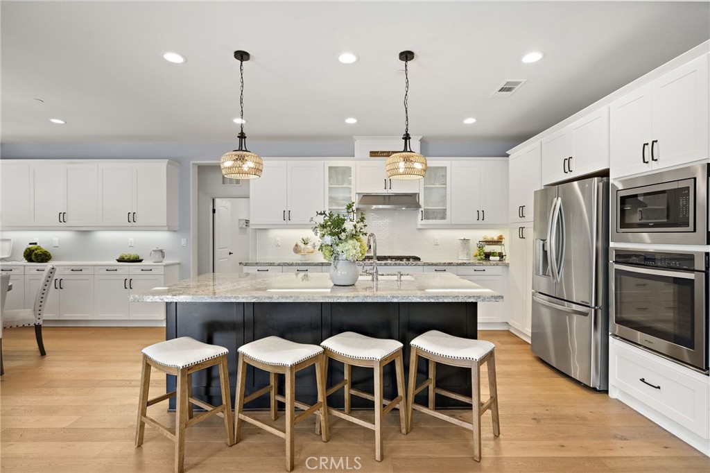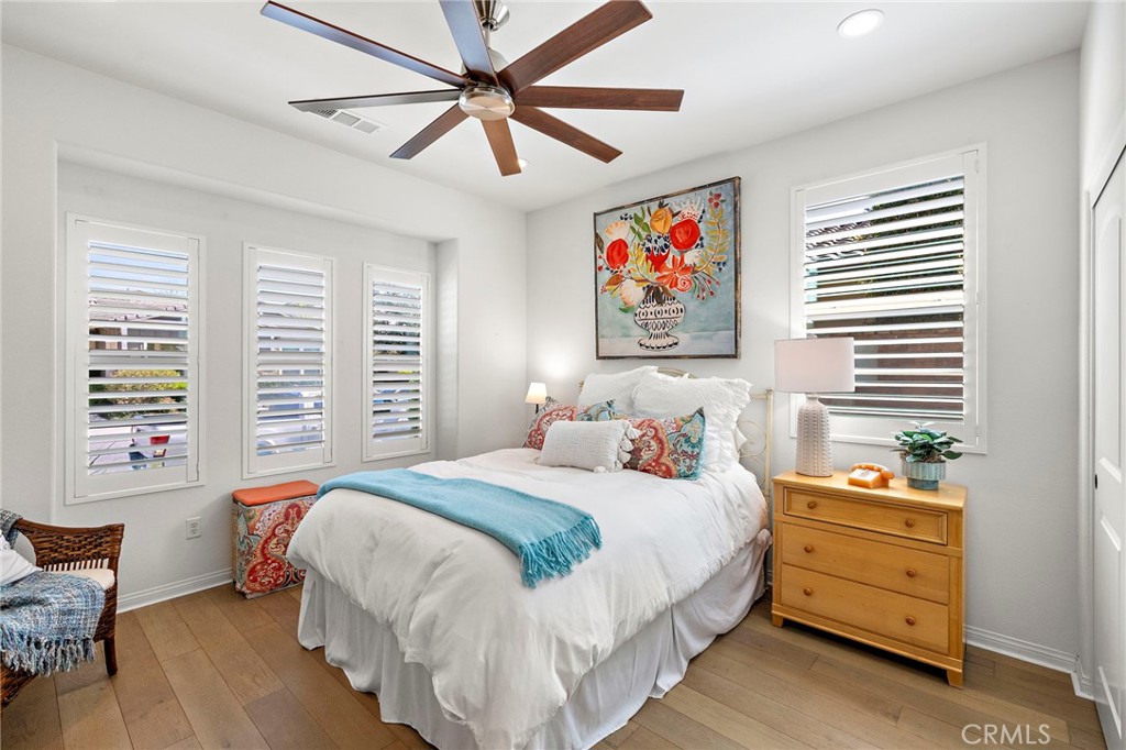 Welcome To The best in 55+ Active Living in the RESORT STYLE COMMUNITY Of Rancho Mission Viejo. This wonderful floorplan is all SINGLE LEVEL with no interior steps and 2 bedrooms plus office/den and two full bathrooms. Pull up to this Street Facing Home with PRIVATE 2 CAR DRIVEWAY and Welcoming Front Porch. Gorgeous Real Wood Floors, White Shaker Style Cabinets and Contrasting Espresso Island Cabinet, Neutral Granite Countertops, Mini White Subway Tile Backsplash, All Black Hardware Pulls, Porcelain Farm Basin Sink, Stainless Steel Appliances, and Beautiful Rattan Pendant Lights and Dining Chandelier. This Open Floorplan was Masterfully Designed with the Guest Suite, Office and Guest Bath Near the Front of the Home, Great Room at the Heart of the Home and the Master Suite Secluded at the Back of the Home for Privacy. The Guest Suite is Spacious with Wood Plank Floors, Recessed Lights and Woven Shades on the Large Windows. The Adjacent Guest Bath includes a Step-in Shower with Oversized Tile Surround and Frameless Glass Enclosure, Quartz Topped Vanity with Mosaic Tile Backsplash, Linen Style Tile Floors and Framed Mirror. Front Den/ Office Holds Endless Possibilities with Views to the Front Porch and Plenty of Room for a Working Office or a Den for Relaxing. The Master Suite is a Private Sanctuary with Plush Designer Carpeting, Plantation Shutters, Beautiful Focal Wall of “Peel and Stick” Removable Wallpaper, Recessed Lights and Peaceful Views of the Backyard. Ensuite Master Bath Doesn’t Compromise Luxury with the Spa Bath with Upgraded Quartz Countertops, Beautiful Marble Chevron Tile Backsplash at both Dual Vanity and the Tub, Step in Oversized Shower and Rain Glass Privacy Glass Windows plus walk-in Closet with Built-ins. Enjoy the View to the Backyard through the Double Wide Slider accessing the Covered Loggia with Ceiling Fan, Paver Hardscape throughout, BBQ Island with Stainless Steel BBQ, Tranquil Fountain, Turf Lawn and Beautiful Mature Low Maintenance Plants. The Two Car Garage with Overhead Racks, Whole House Water Softener, and Three Large Windows Almost Make It Feel Like An Extension of the Home. Steps from the home is one of the exclusive 55+ amenities, The Outlook Pool with resort style pool, jacuzzi spa, firepit, bbq and outdoor room with fireplace and TV. Plus access all of the amenities in RMV including 10 resort pools, fitness centers, pickleball, firepits and more. Come Experience the Best In 55+ Living in This Active Community!