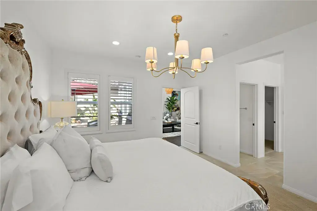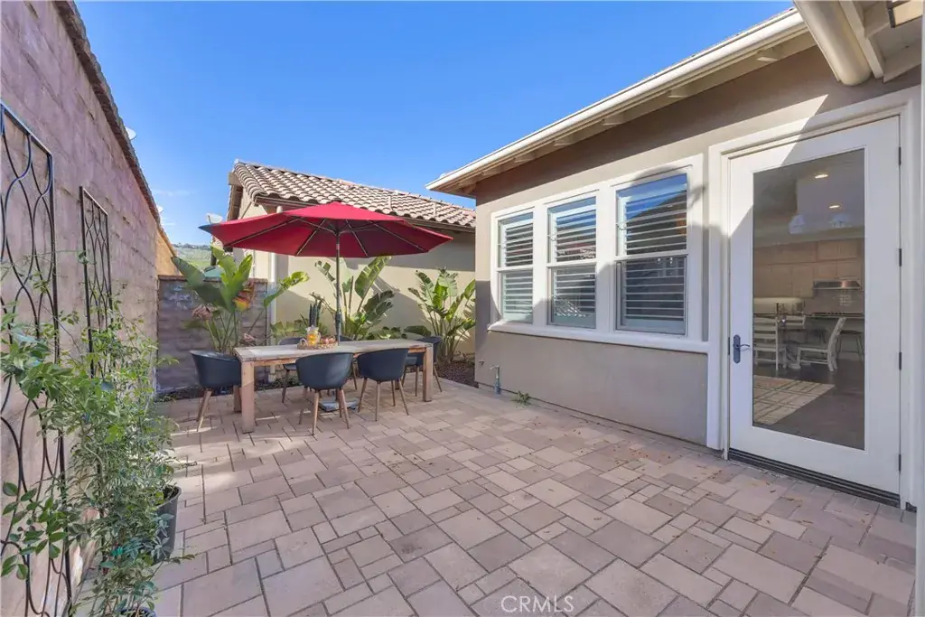 Welcome to a True Single Story retreat nestled in the heart of gated Gavilan Village in Rancho Mission Viejo. This elegant standalone home offers a perfect blend of comfort and style, featuring 3 bedrooms and 2 bathrooms and no attached walls. Designed with an open-concept layout, the living space flows seamlessly, enhanced by high ceilings and modern LED recessed lighting. Beautiful kitchen boasting white cabinetry, stainless steel appliances, gleaming granite countertops, a walk in pantry and an expansive island that doubles as a hub for casual gatherings. The adjacent dining area is large enough for a 6 person dining table and flows into the family room. Your built-in media cabinet is a focal point for the family room and can accommodate an 85″ TV for those sports watching gatherings. The home is masterfully designed with privacy in mind positioning the Primary bedroom on one side of the home and the secondary bedrooms on the other side down a hallway. The primary suite is a sanctuary with beautiful chandelier and plantation shutters plus a luxurious en-suite bathroom, featuring double sinks, limestone countertops, an oversized walk-in shower, and walk-in closet. Both secondary bedrooms have overhead chandeliers as well as plantation shutters. They share the full bath with tub/shower combination, framed mirror and quartz countertops. This home is also equipped with a laundry room with upper cabinets, sink and included washer/dryer. The garage has been outfitted with epoxy floors, storage cabinetry and a whole house water softener. Step outside to enjoy the private backyard, beautifully designed with custom pavers and beautiful plants- ideal for hosting friends and family. For recreation, residents benefit from exceptional community amenities steps away at the Hacienda Club including a sparkling pool, relaxing spa, and vibrant club house with clubhouse, workout gym, card rooms and yoga studio. Residents also enjoy access to all of the amenities RMV has to offer including 2 additional 55+ pools, plus all age Amenities including putting green, firepits, bars, and more. One of the beauties of this home is that Gavilan Sendero offers the lowest rate of Mello Roos in RMV and will be significantly less than the Rienda properties. Yet, you are walking distance to the Sendero Gavilan Amenities and have access to all of the other amenities in all three villages. Experience the best of Rancho Mission Viejo living in this exquisite property.
