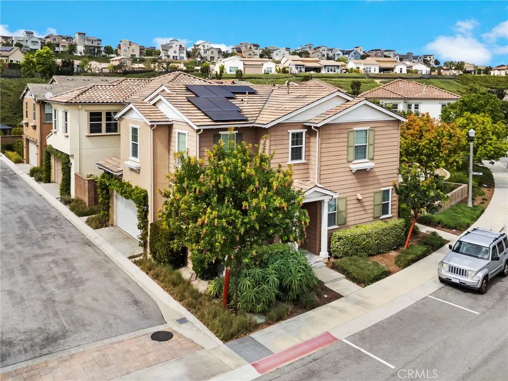 Welcome to the charming neighborhood of Citron at Esencia in Rancho Mission Viejo. This detached Craftsman-style Citron Plan 2 home sits on a prime corner lot next to a pocket park, with no neighbor on one side—offering enhanced natural light and added privacy. The home features newer-fully owned and paid for solar, an upgraded kitchen full of natural light, a huge primary closet, and an upstairs loft. Located in a vibrant neighborhood full of families, kids, community and life, you’ll enjoy close proximity to multiple pools, parks, and award-winning schools. Friends and neighbors will feel welcome thanks to the home’s classic covered front porch. Indoors, a bright and airy atmosphere enhances living spaces that include a living room with two walls of windows and a French door that leads to a private patio. The living room flows to the dining area, which seamlessly continues to an island kitchen with white cabinetry, quartz countertops, a full tile backsplash, farmhouse sink and stainless-steel appliances. Approximately 2,005 square feet, the two-story design was built in 2017 and offers three bedrooms, two- and one-half baths including a powder room with elegant pedestal sink on the main floor, and a flexible upstairs loft that can become a home office, playroom, studio, and so much more. The primary suite presents a luxurious escape for homeowners, complete with an Oversized Walk-In Closet, and an ensuite bath with dual sinks, soaking tub and separate shower. Powered by a newer owned and fully paid-for solar system under NEM metering 2.0, this outstanding home is further embellished with an attached two-car garage, luxury vinyl plank flooring downstairs, custom window treatments, recessed lighting and ceiling fans. Vibrant, inviting and full of life, Citron offers a wonderful location just a short stroll from Esencia K-8, resort-style pools and spas, tennis and pickleball, a farmers’ market, playgrounds, fire pits, fountains, community gardens, & shopping centers. Rancho Mission Viejo’s Award-Winning Master Plan Community features popular recreational attractions like The Hilltop Club with its resort like pool & spa, arcade, bar, and fitness center, The Campout right across the street, The Pavilion, or Rienda’s new Ranch Cove a 20,000 sq ft lagoon style pool & Boulder Pond. Miles of beaches, the Dana Point Harbor, San Juan Capistrano & the 241 Toll Road are also all just minutes away too, come see this beautiful home & community!