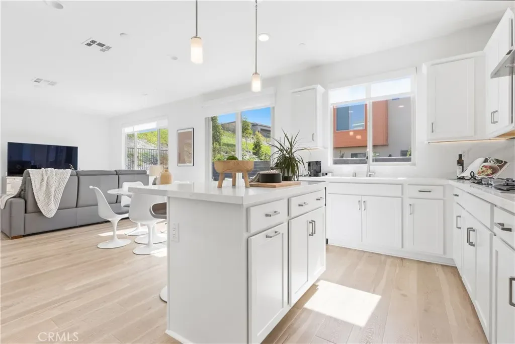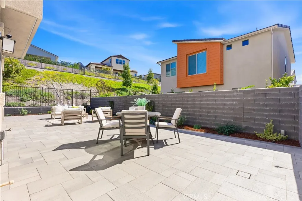 Welcome to this exceptional CORNER LOT home in the desirable Evolve community of Rancho Mission Viejo. Situated on a PREMIUM LOT with an OVERSIZED backyard and side yard overlooking the hill side, this beautifully designed 3-bedroom, 2.5-bath home with a versatile loft offers the perfect blend of modern elegance, comfort, and functionality. The home showcases a bright open-concept layout ideal for both everyday living and entertaining, with abundant natural light and thoughtfully curated upgrades throughout. The gourmet kitchen serves as the heart of the home, featuring gorgeous quartz countertops, stainless steel appliances, full-height backsplash, hood range, center island with seating, self closing cabinet drawers and a large pantry. The kitchen flows seamlessly into the living and dining areas, creating a welcoming and connected space. Upstairs, a flexible loft provides the perfect space for a home office, media room, or additional lounge area. The primary suite is a private retreat, complete with a luxurious en-suite bathroom featuring dual vanities, upgraded tile floors, an oversized walk-in shower with elegant finishes, and a generous walk-in closet. Two additional bedrooms offer generous space and abundant natural light, along with a full bathroom featuring dual sinks and tile flooring. The upstairs laundry room is conveniently located and includes extra storage. This home is enhanced with numerous upgrades, including wood laminate flooring throughout, upgraded carpet in the bedrooms, custom window treatments, recessed lighting, ceiling fans and pendant prewiring, upgraded fixtures, and Energy Star-rated systems. Additional highlights include EV wired 2 car garage, tankless water heater, custom window coverings including remote controlled slider shade and PAID OFF SOLAR for efficiency and sustainability. Step outside to a generously sized backyard—perfect for relaxing, dining, or entertaining while enjoying peaceful views and open space. Ideally located near Ranch Camp and within walking distance to Rancho Mission Viejo’s world-class amenities, residents enjoy access to resort-style pools and spas, fitness centers, community farms, parks, playgrounds, sports courts, trails, a K-8 school, coffee shop, arcade, and more. This home offers an unparalleled opportunity to experience elevated living in one of Orange County’s premier master-planned communities.