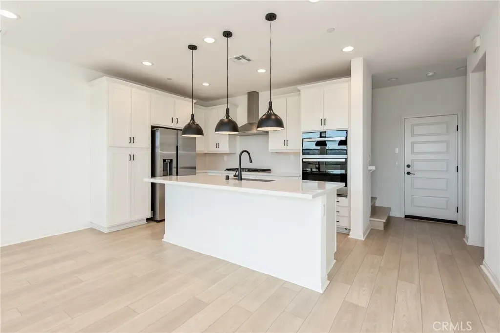 Beautiful 3 bed 2.5 bath home with VIEW at Juniper at Rienda! Enjoy the Resort-style amenities and clubhouse. The first floor features an open floor plan with upgraded wood flooring and glass sliding doors in the dining area, allowing ample natural light through the entire living area. The modern gourmet kitchen boasts a central island, a full set of stainless steel appliances, full backsplash, and will include a brand-new refrigerator to inspire all your culinary creations. Additionally, a convenient powder room is located on the first floor for added convenience. On the second floor, the three-bedroom layout includes a beautiful owner’s suite with an attached bathroom and a walk-in closet. The second and third bedrooms are located down the hall for privacy and share a full bathroom between them. A laundry closet is conveniently situated in the hall between the bedrooms, enhancing both simplicity and convenience. **Leased solar available for savings on your electricity bill!