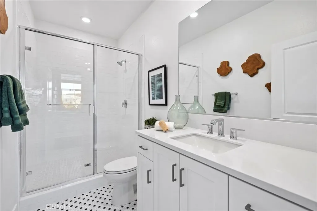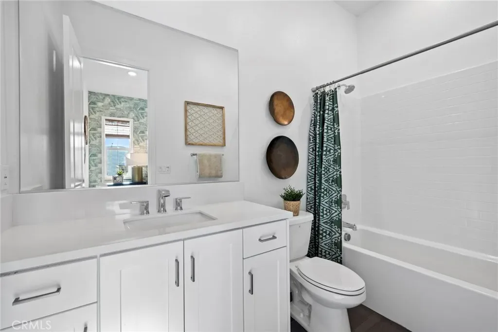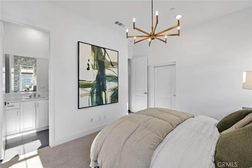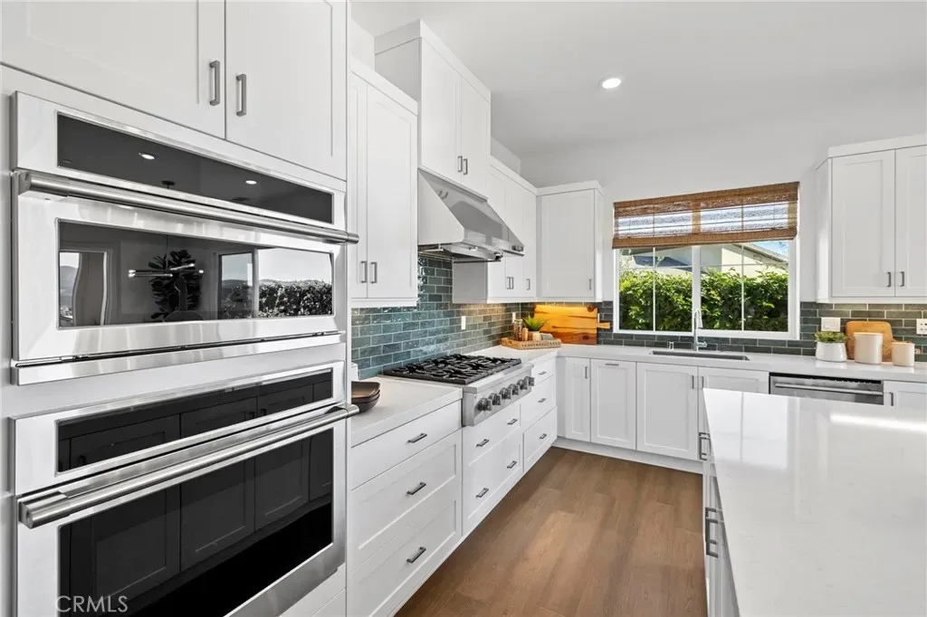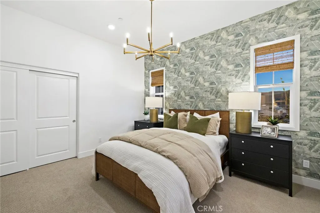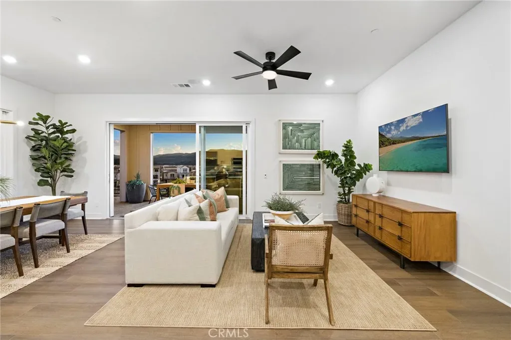 Stunning Fully Furnished Former Model Home with panoramic views and beautiful upgrades! Upon entry you are drawn in by the dual glass stacking doors opening to the stunning backyard with panoramic views of the hills and beyond. Rich wide plank luxury vinyl flooring flows throughout the main living spaces of this highly upgraded former model home. The kitchen features white cabinetry with soft close hinges, white quartz countertops, full tile backsplash and stainless steel appliances—including a large built-in refrigerator and 6 burner stove. Two bedrooms, including the primary suite and secondary suite, office, laundry room and powder bath are all on the first floor—including an attached two-car garage with epoxy flooring plus an 8 panel Solar System. Just upstairs the second floor boasts a large bonus room with full bath which can be used as a third bedroom suite, gym or game room. The spacious primary suite with beautiful limestone tile focal wall and designer chandelier. It’s generous ensuite bath has a dual sink vanity, walk-in shower with glass enclosure and bench seat and a large walk-in closet. Office with custom paint and a modern oversized brass ceiling light for a curated look. Guests will be welcomed with upgraded carpeting, a stylish wallpapered accent wall and striking gold chandelier. Plus the ensuite bath with single sink vanity and tub/shower combination makes it a luxurious space for guests. Upstairs is a oversized bonus room with wrap around windows that share the same stunning views as the backyard. With an ensuite full bath and wall of closets, this space is full of options. The home’s backyard is the star of the show! On a corner lot offering maximum privacy with only one neighbor the side and unobstructed views of open space and mountains beyond. A combination of hardscape pavers, turf and mature landscaping with ambient lighting make it a comfortable space to spend time outdoors day or night. The large covered patio with recessed lighting nearly spans the entire length of the back of the home and the wrap around yard includes a bocce ball court. A built-in BBQ bar has a Green Egg smoker and stainless steel refrigerator —convenient for outdoor entertaining. Steps from the home is the Perch 55+ Pool complex plus you have access to all of the amenities that both Gavilan and Rancho Mission Viejo have to offer which include ten community pools and clubhouses, tennis and pickleball courts, walking trails, coffee shop, gyms and more.