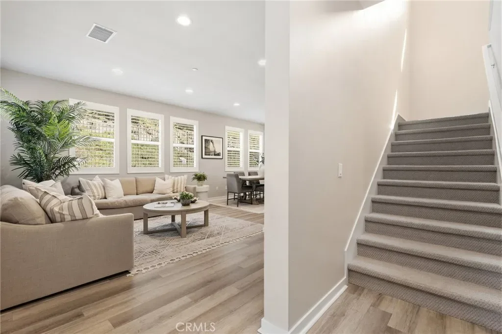 You’ll feel right at home the moment you step inside this move-in ready Plan 5 in Reverie, thoughtfully designed to bring people together while still offering peaceful spaces for privacy. The first floor welcomes you with a true fifth bedroom guest en-suite, complete with a cozy sitting area and direct access to the backyard—perfect for visiting guests, extended family, or a private home office. The main living area flows effortlessly from the living room to the dining space and into the expansive kitchen, where a huge center island naturally becomes the hub for gatherings and everyday living. Convenience is built in with a downstairs laundry room and powder room. Step outside to a wrap-around private backyard that backs to a landscaped slope, offering additional peace and privacy. The outdoor space features low-maintenance turf, creating the perfect place to relax, entertain, and enjoy Southern California living. Upstairs, the home continues to impress with a spacious primary suite complete with a walk-in closet and well-appointed bathroom, along with a junior suite featuring its own en-suite bathroom. Two additional generously sized secondary bedrooms provide flexibility for family, guests, or workspace needs. Additional highlights include a two-car garage with epoxy flooring, overhead storage racks, and a full driveway, a tankless water heater, and a solar system designed to help keep electricity bills low. Located in the amenity-rich community of Rancho Mission Viejo, residents enjoy access to an incredible array of resort-style amenities, including pools, parks, trails, fitness centers, community farms, and social events. The home is also conveniently close to shopping, dining, top-rated schools, and commuter routes, with easy access to the 241 Toll Road and 73 Toll Road, making travel throughout Orange County simple and convenient. This is a home you won’t want to miss.