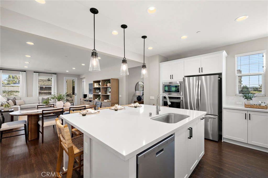Welcome to 50 Jarano. Nestled in the highly coveted Reverie neighborhood of Rancho Mission Viejo, this exceptional residence offers a blend of privacy, tranquility, and elevated design. Inside, abundant windows flood the home with natural light, creating an inviting and airy ambiance throughout. The heart of the home is the chef’s kitchen, featuring an oversized island, quartz countertops, and designer marble backsplash—perfect for both everyday living and entertaining. The thoughtfully designed main level includes a laundry room, mudroom, and an additional spacious downstairs room that can easily serve as a home office, playroom, or optional fifth bedroom. Upstairs, you’ll find four generously sized bedrooms, including an oversized primary suite with a spa-inspired bath and tranquil hillside views. Step outside to an entertainer’s dream backyard, complete with an outdoor living space featuring a cozy fireplace, built-in barbecue, and spa—ideal for year-round enjoyment and memorable gatherings. This home is located at the end of the street and includes a private driveway leading to a spacious three-car garage, complete with epoxy flooring for both style and durability. This stunning home offers luxury, functionality, Apple smart home technology, and an unbeatable location. Enjoy all that this award winning master planned community has to offer with resort like amenities from community events, pools, splash pads, putting green, hiking and NEV trails, multiple clubhouses, sports/pool bars, arcade, sports park, tennis and pickle ball courts, camp out with large fire pit area, parks, coffee house, dog park, gyms, close to Esencia’s K-8 school, Montessori and more!