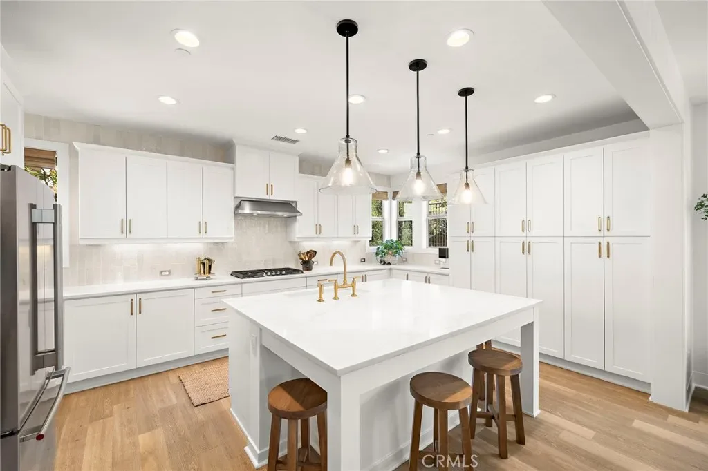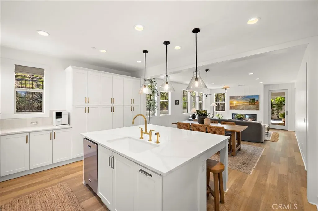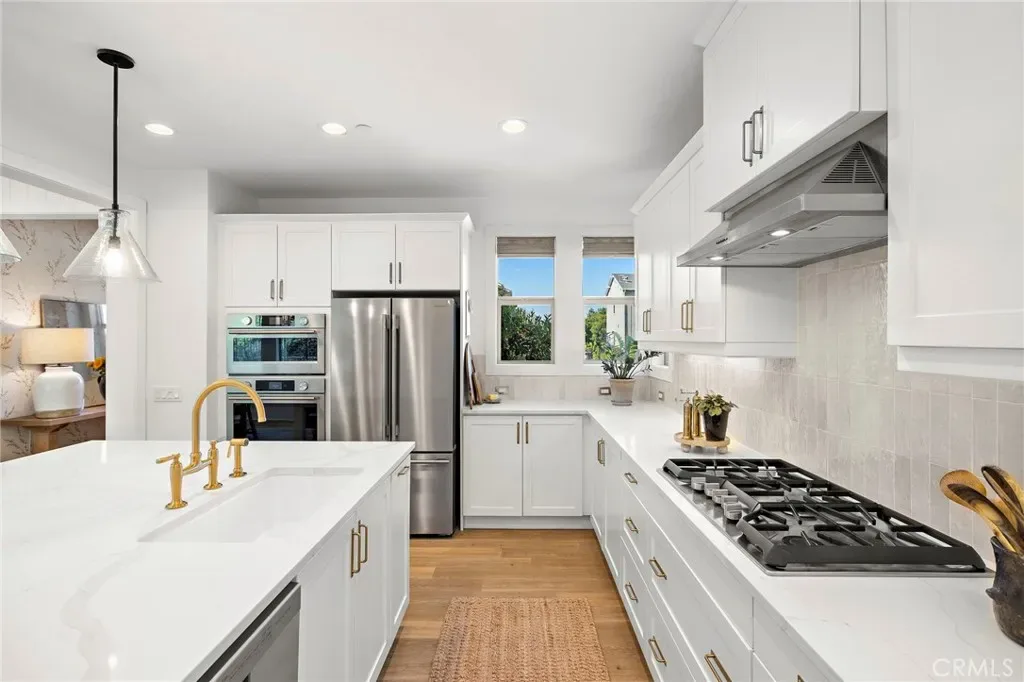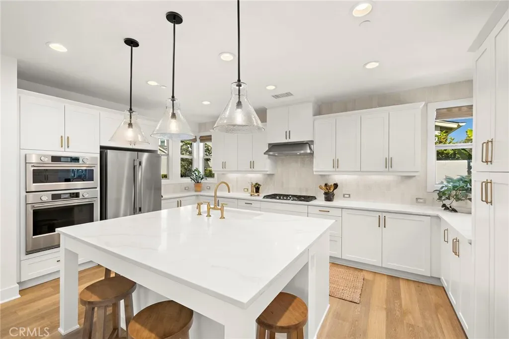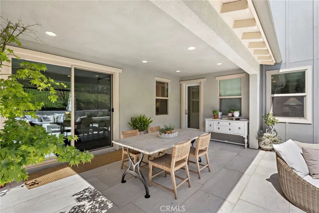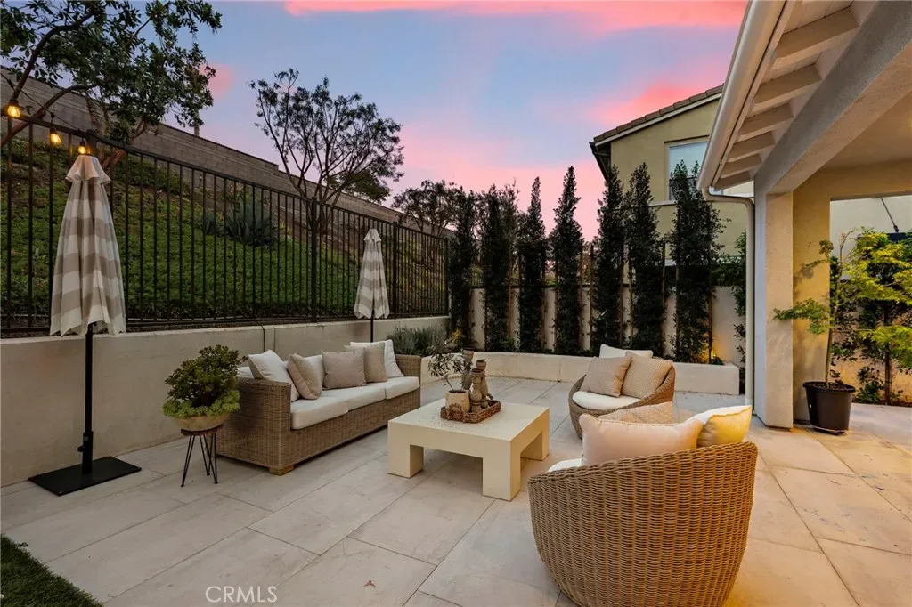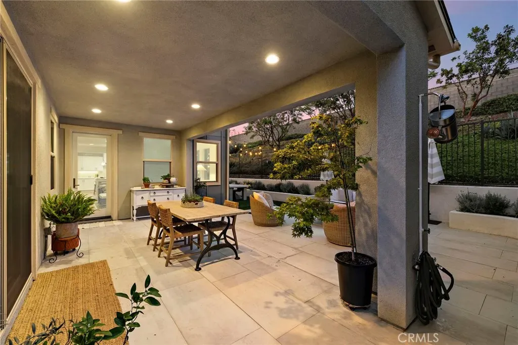Welcome to this beautifully upgraded 5-bedroom, 4.5-bathroom home located on one of Reverie’s most coveted streets in the heart of Rancho Mission Viejo. Thoughtfully designed with both style and functionality in mind, this residence offers the perfect blend of modern luxury and everyday comfort. Step inside to discover light-filled living spaces enhanced by luxury vinyl plank flooring, custom shiplap walls, and stylish designer lighting throughout. The stunning kitchen offers white cabinetry with quartz counters, soft close drawers, all stainless steel appliances and a wall of pantry cabinets. The oversized quartz island has seating for three, beautiful pendant lighting and convenient storage underneath. The open-concept floor plan seamlessly connects the main living areas, creating an inviting space ideal for both entertaining and daily living. A standout feature of the home is the highly desirable first floor Next Gen suite with a separate bedroom, full bathroom, and a sitting room area with a wet bar—perfect for multigenerational living, live-in nanny, or a private home office and gym—offering flexibility to suit a variety of lifestyles. Additionally the laundry room and a convenient powder bath are in a downstairs hallway. Just outside the French door step into a covered outdoor room—creating a true indoor-outdoor living experience perfect for relaxing or hosting year-round. This large yard is lushly landscaped backing to a beautiful greenbelt and is positioned for southwestern lighting all day long. Upstairs find four spacious bedrooms and three thoughtfully upgraded bathrooms providing comfort, space and stylish tile work and design. One of the secondary rooms is nearly the size of the Primary bedroom and appointed with a walk-in closet. The Primary is tucked into the hallway and provides a zen-like bathroom with oversized step-in shower, soaking tub, dual quartz vanity plus a walk-in closet with custom built-ins. Additional highlights include owned solar panels and an ev charger, along with a host of designer upgrades and the ideal location just steps from the Backyard Playground and zipline park, this home also enjoys close proximity to North Plunge, Hilltop Club, and the highly anticipated Esencia Commons shopping plaza—bringing dining, shopping, and community amenities right to your doorstep. This is a rare opportunity to own a truly turnkey home in one of Rancho Mission Viejo’s most sought-after neighborhoods.
