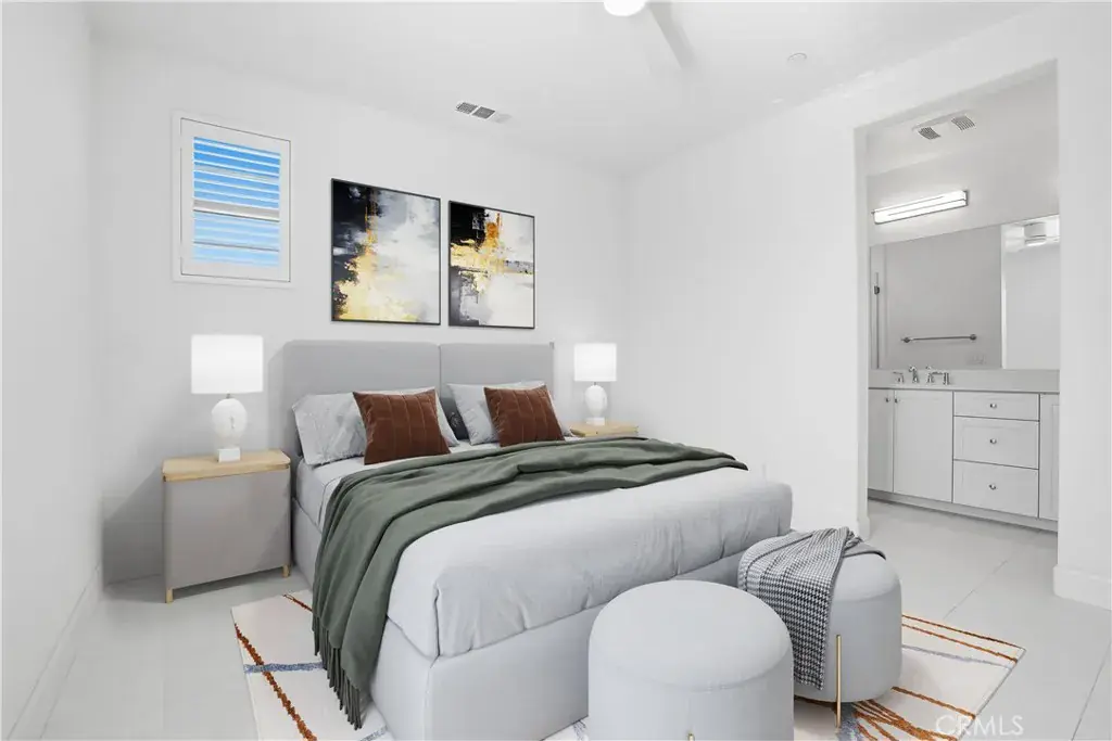 Welcome to an exceptional residence in the highly coveted Sage enclave of Esencia—a sun-drenched, corner-lot, end unit townhome that epitomizes modern luxury living. This elegant 2-bedroom, 2.5-bath home showcases an expansive, open-concept layout situated entirely on a single level, offering an elevated sense of privacy with no neighbors above or below. Impeccably upgraded, the home features exquisite Portuguese tile flooring, refined stone and granite surfaces, a striking full granite backsplash, and a suite of premium, energy-efficient stainless steel appliances anchored by a designer hooded range. Sophisticated recessed and pendant lighting beautifully complements the home’s bright, contemporary aesthetic. Both bedrooms serve as luxurious suites, each appointed with dual vanities, oversized walk-in showers, plantation shutters, and generous walk-in closets. Additional premium enhancements include Energy Star–rated heating and cooling systems, double-pane Energy Star windows, a tankless water heater, and a spacious attached two-car garage. The residence is turnkey and move-in ready with an included washer, dryer, and refrigerator. Enjoy your morning coffee or evening unwind on the private balcony with tranquil peek-a-boo mountain views. As a resident of Esencia, you will indulge in an unparalleled collection of award-winning, resort-style amenities—state-of-the-art fitness centers, crystalline lagoon pools, community farms, al fresco dining pavilions, dog parks, a charming coffee house, an expansive sports park, arcade, scenic walking trails, verdant parks, thoughtfully designed clubhouses, a horse corral, and a vibrant year-round calendar of HOA-curated events.Perfectly situated, you are moments from a blue-ribbon elementary school, a short 15-minute drive to the coast, and just 20 minutes from Irvine via the 241 Toll Road.