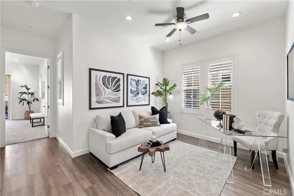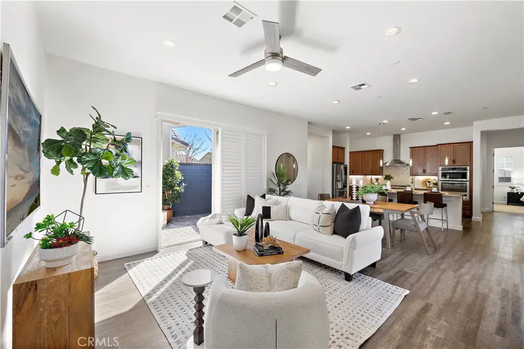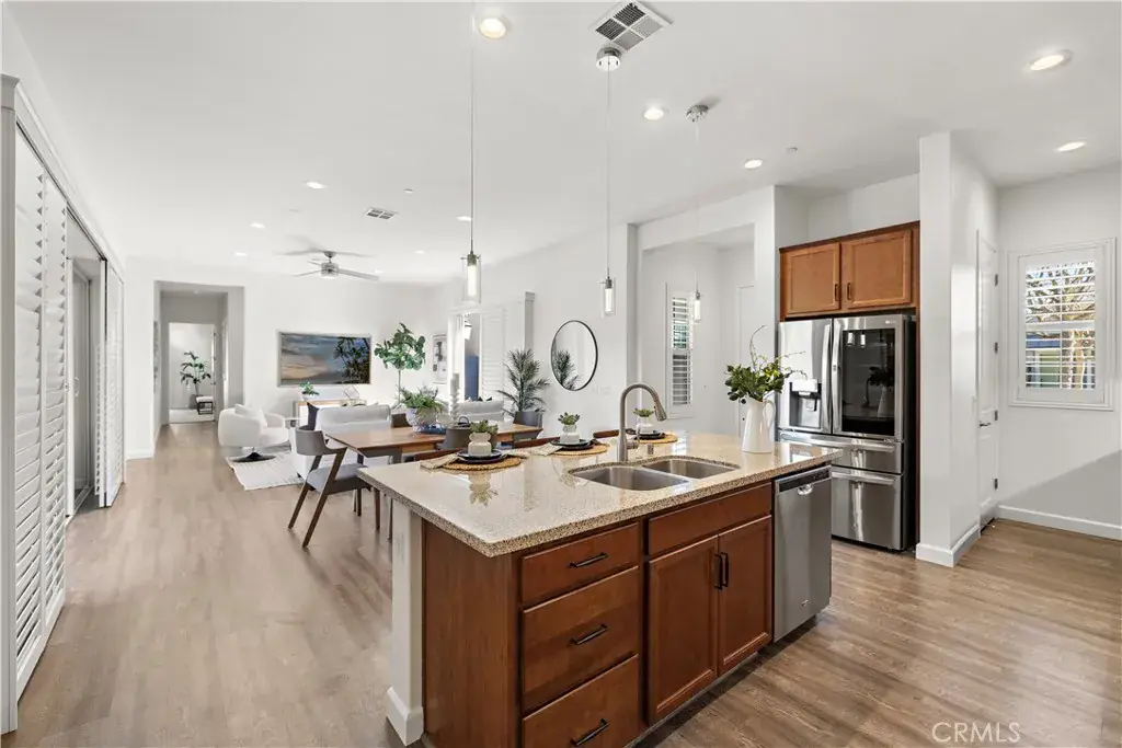 Welcome to this exceptional single-level residence, impeccably upgraded and truly move-in ready. Set on one of the largest lots in the community, this home offers an ideal blend of style, comfort, and indoor-outdoor living. The thoughtfully designed floor plan features two bedrooms, two bathrooms, and a generous office/den, along with a full driveway for added convenience. The wrap-around backyard is perfectly suited for entertaining, showcasing custom pavers, a built-in fire pit, and a covered California room with expansive sliding doors that seamlessly connect the indoors to the outdoors—all with minimal yard maintenance required.