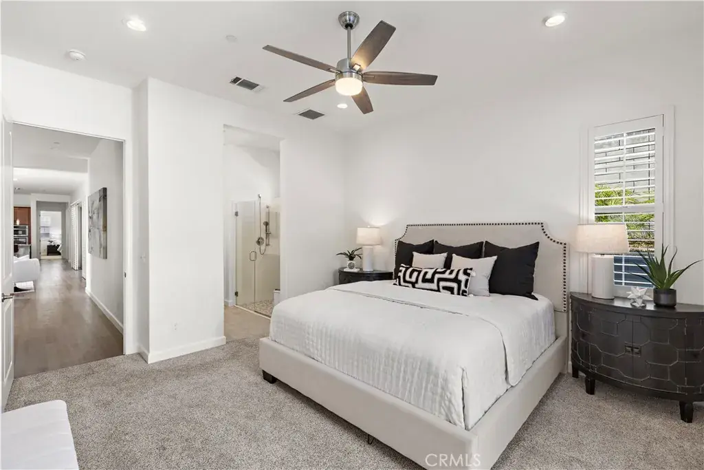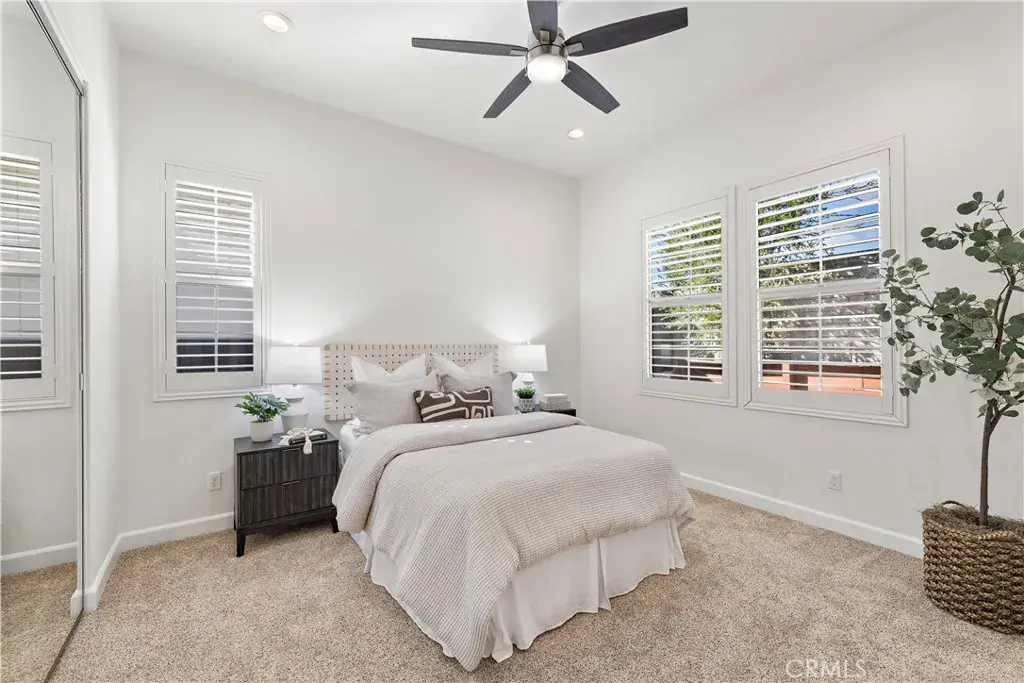 At the heart of the home is a beautifully upgraded kitchen complete with granite countertops, stainless steel appliances, and a large walk-in pantry. The private primary suite offers a peaceful retreat with a spacious walk-in shower and dual vanity sinks. Plantation shutters throughout add timeless elegance and enhance natural light.