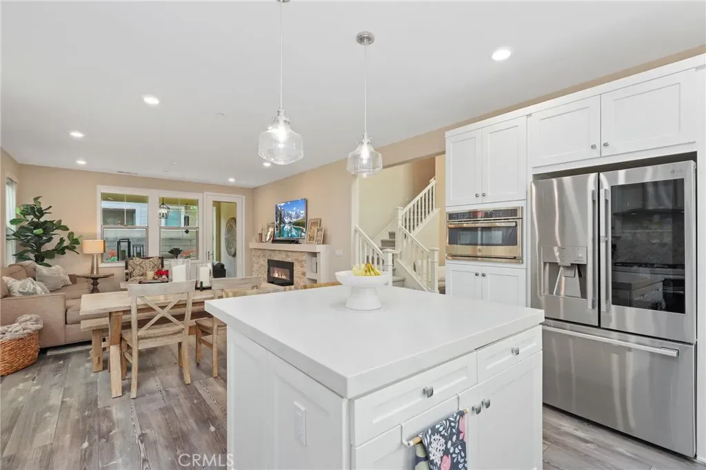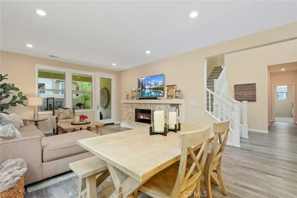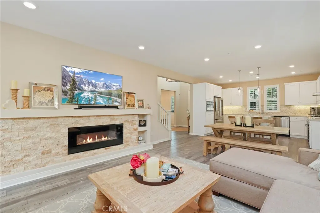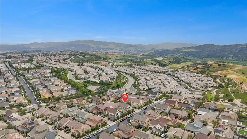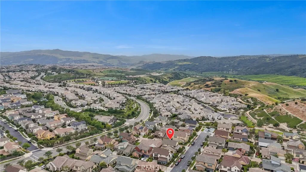 Welcome to 30 Ocaso, a beautifully upgraded smart home nestled in the highly sought-after village of Esencia in Rancho Mission Viejo. Showcasing timeless design and thoughtful functionality, this newer residence offers the perfect blend of style, comfort, and modern living. From the moment you arrive, the home impresses with its inviting curb appeal, clean architectural lines, and a soft, neutral exterior palette. Inside, you’re greeted by a grand entry with soaring ceilings, new designer paint, upgraded lighting, a striking chandelier, plantation shutters and a bright, airy ambiance that flows seamlessly throughout the open-concept floorplan. Designed with both everyday living and entertaining in mind, the main level features a spacious living area anchored by a cozy fireplace, opening effortlessly to the chef-inspired kitchen. The kitchen is beautifully appointed with a large center island, abundant cabinetry, sleek countertops, custom backsplash, under-cabinet lighting, and a full suite of stainless appliances including a cooktop, oven, built-in microwave, vent hood, plus a plumbed alkaline water dispenser This versatile layout offers 3 spacious bedrooms, including a highly desirable main-level bedroom with its own full bath—perfect for guests or multigenerational living—plus a dedicated office or den that can easily function as a fourth bedroom. Upstairs, the primary suite serves as a private retreat, complete with a spa-like bathroom featuring dual vanities, a soaking tub, separate shower, and a generous walk-in closet. Step outside to a beautifully landscaped backyard designed for both relaxation and entertaining, featuring a covered patio area, outdoor fireplace, and plenty of space to unwind or host gatherings, all enhanced by subtle peek-a-boo mountain views. Additional highlights include FULLY PAID SOLAR, EV charger, home water softener, New carpet, smart home features, a tankless water heater, Ring doorbell, custom closet organization, and a whole house fan for enhanced energy efficiency and comfort. Residents of Esencia enjoy access to Rancho Mission Viejo’s award-winning amenities, including resort-style pools and spas, state-of-the-art fitness centers, clubhouses, sports parks, scenic hiking and biking trails, and vibrant community gathering spaces. This is an exceptional opportunity to own a turnkey home in one of Orange County’s most desirable master-planned communities.
